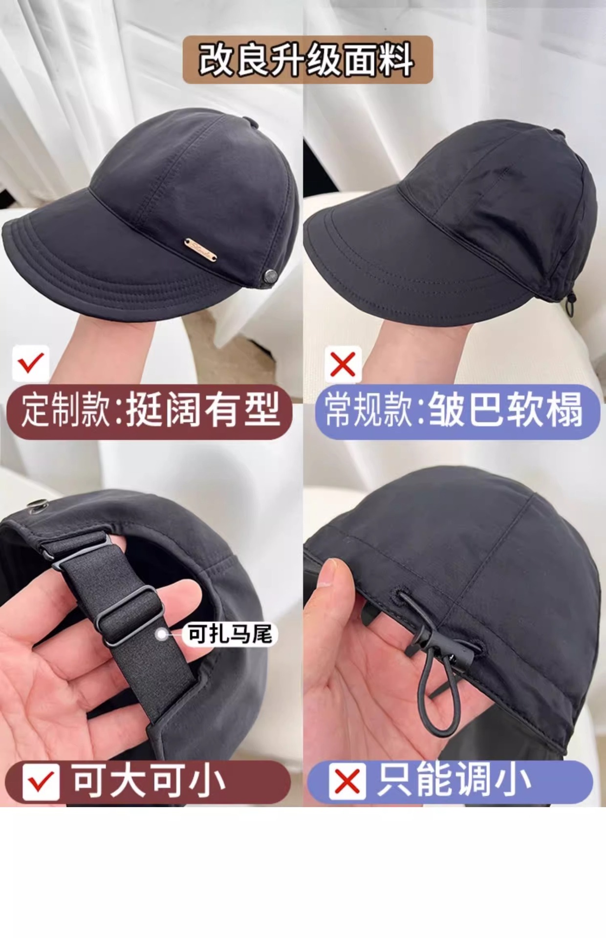 遮阳防晒帽女2025新款渔夫帽大头围帽子女春夏速干鸭舌帽