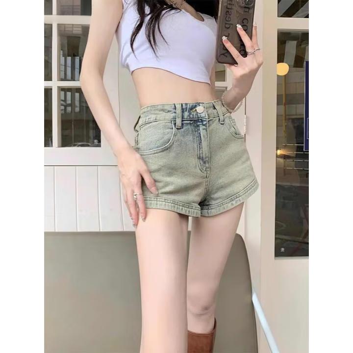 牛仔短裤女夏季2025新款美式做旧弹力小个子高腰a字超短热裤