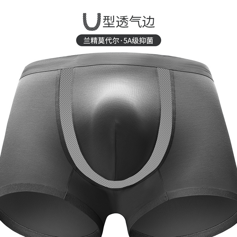 U型透气网眼男士无痕内裤莫代尔纯色男式平角裤蚕丝裆抑菌裤头