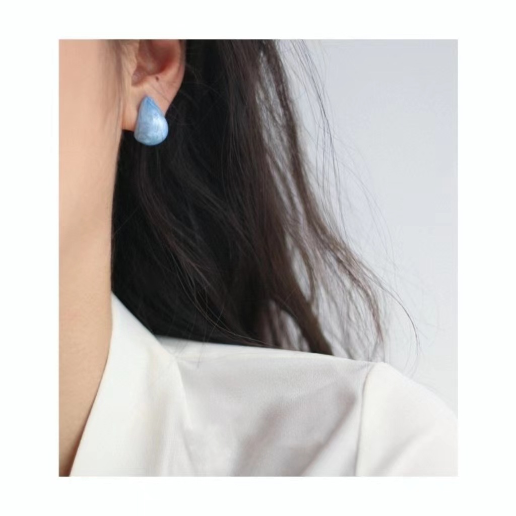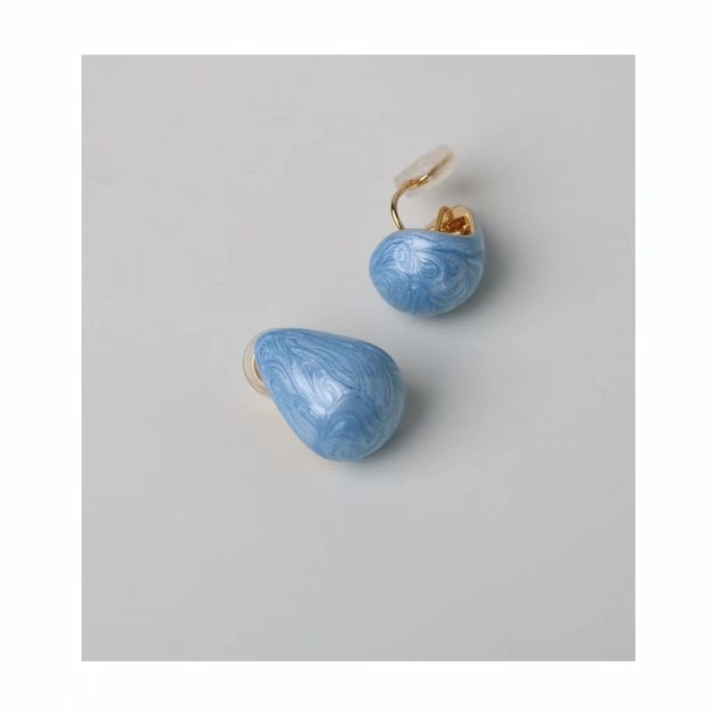奶油色蓝色水滴滴釉蚊香盘耳夹无耳洞高级感轻奢通勤耳饰女