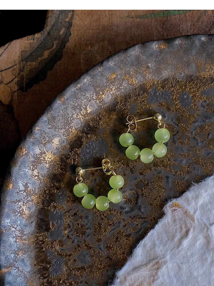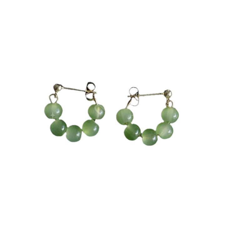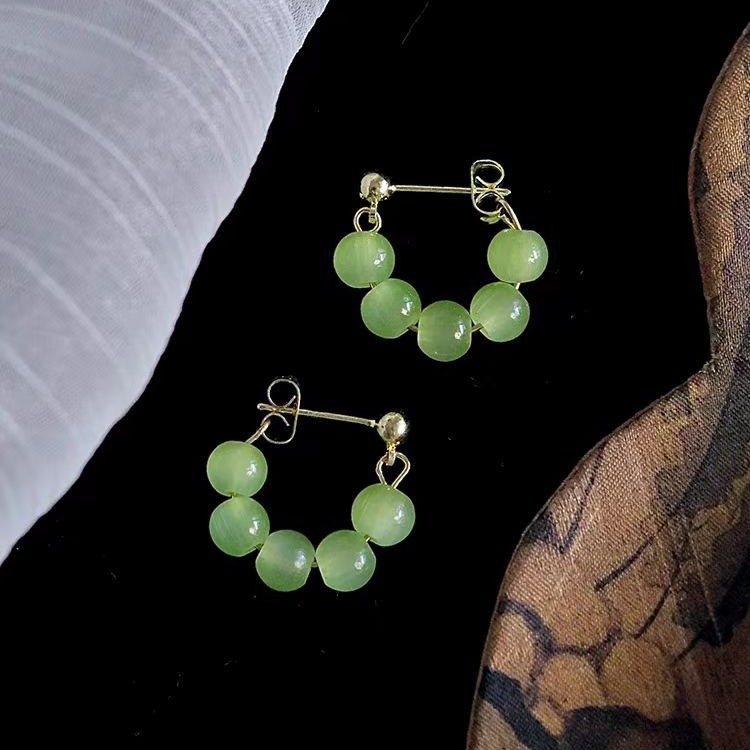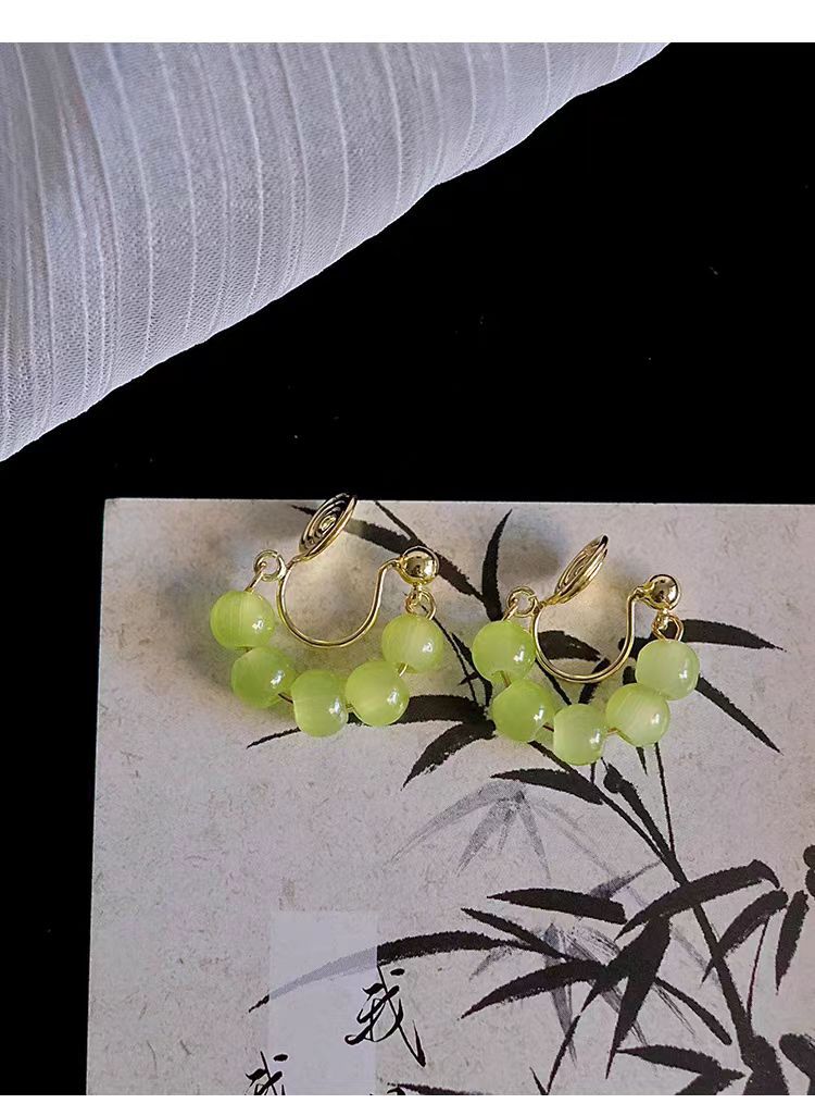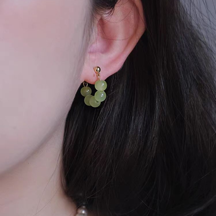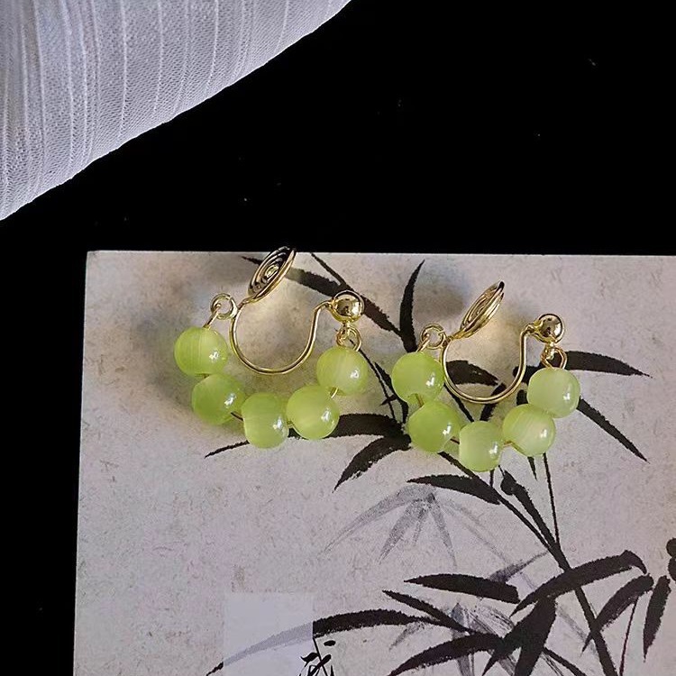 《青青糯山》春夏清新显白复古新中式绿色串珠耳环耳圈耳夹无耳洞