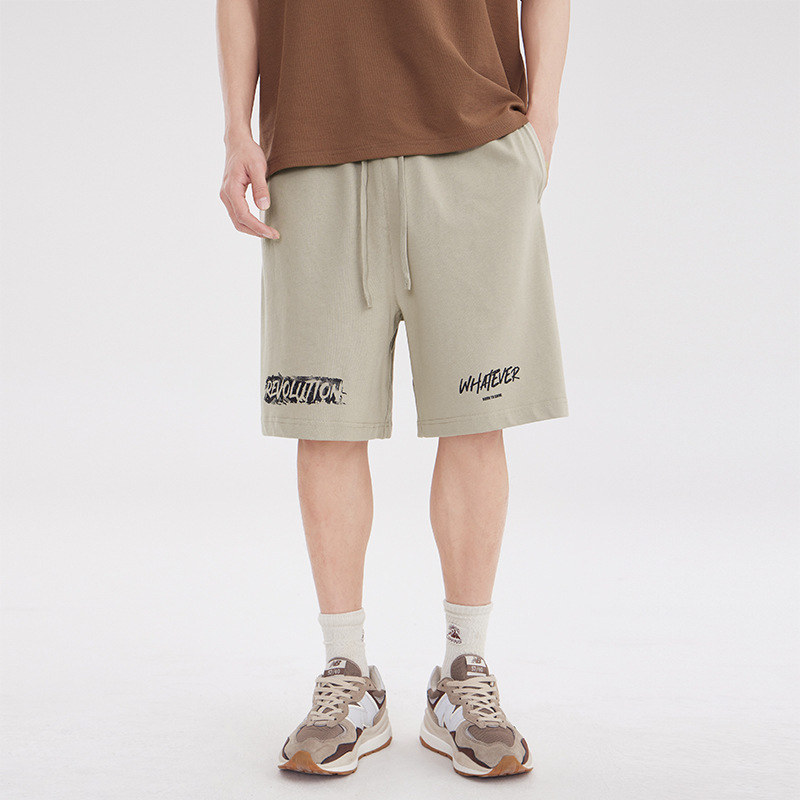 纯棉宽松抽绳短裤男280克印花五分休闲裤夏天简约舒适沙滩中裤男