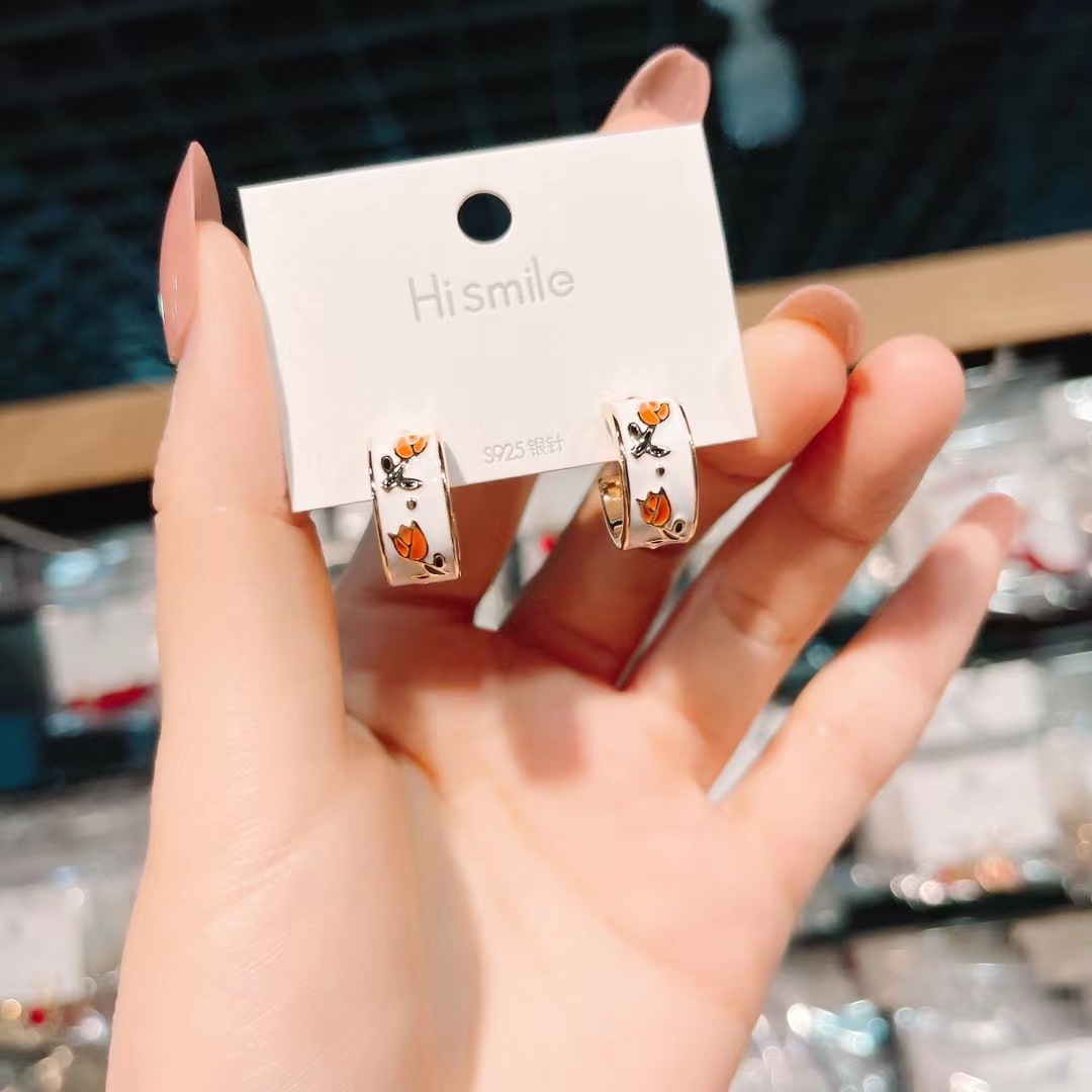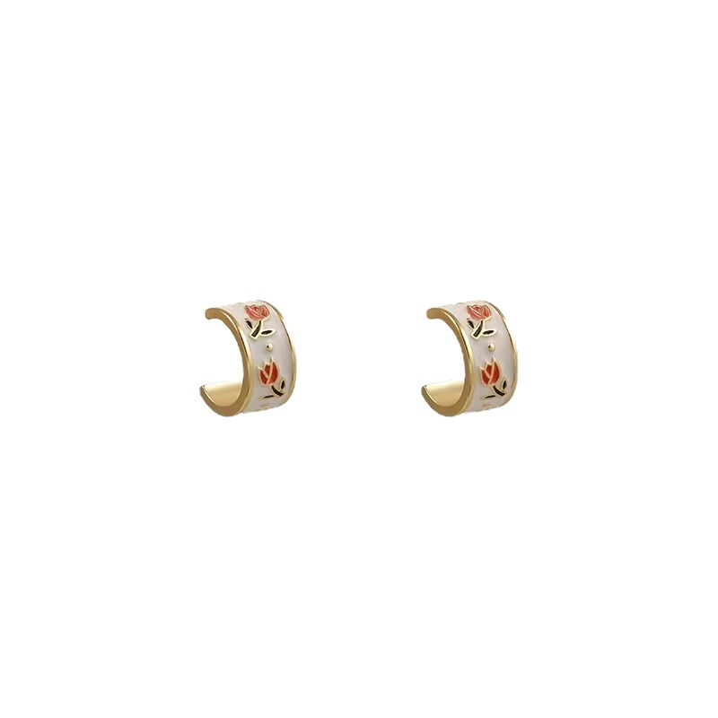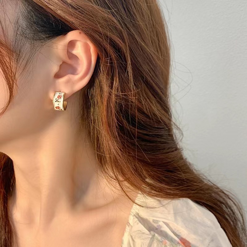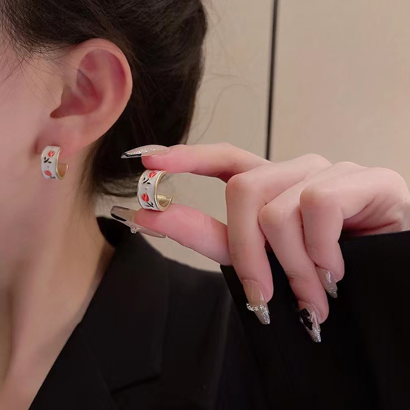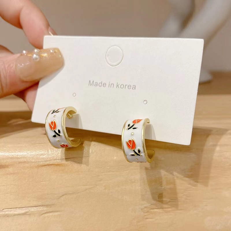 复古法式郁金香花朵圆圈耳环女新款潮小众设计感精致小耳圈