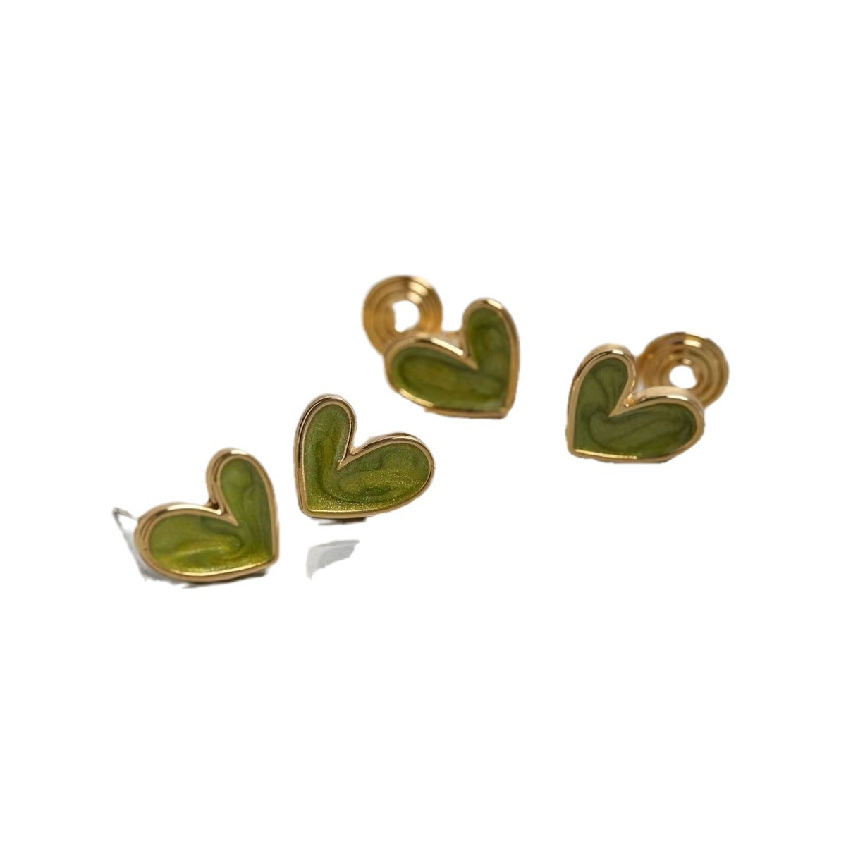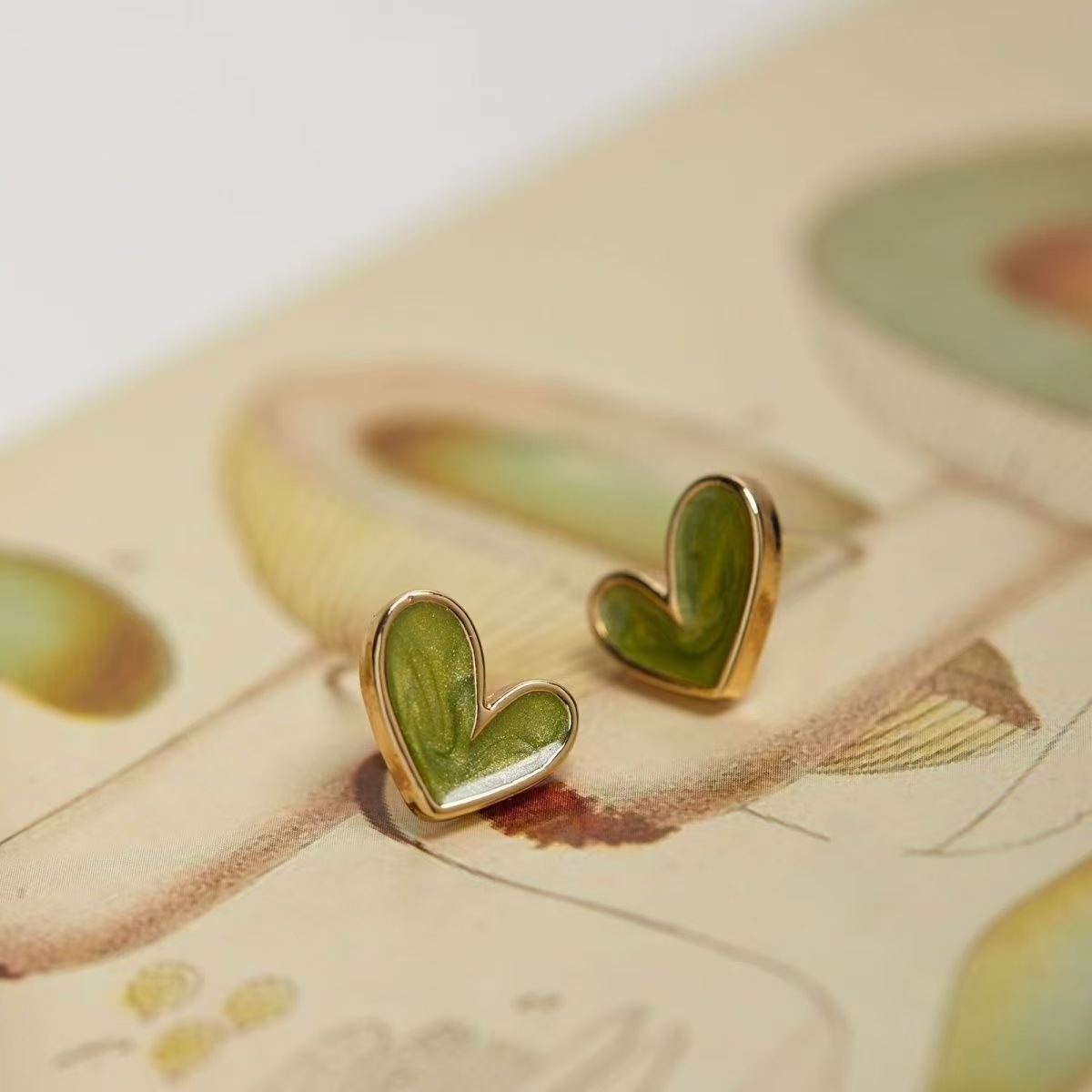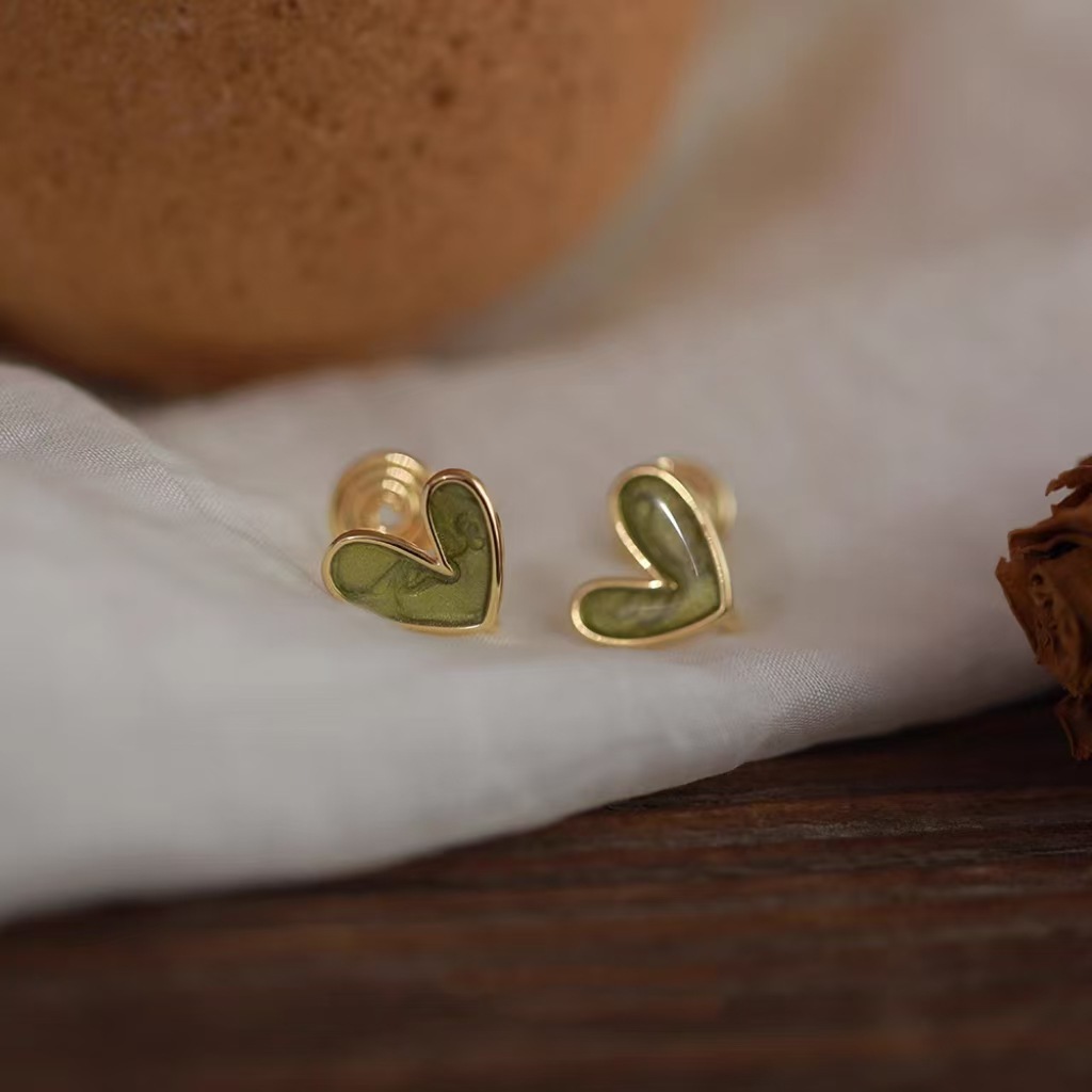 「抹茶爱心」小巧绿色爱心耳钉清新精致油画感蚊香盘无耳洞耳夹女