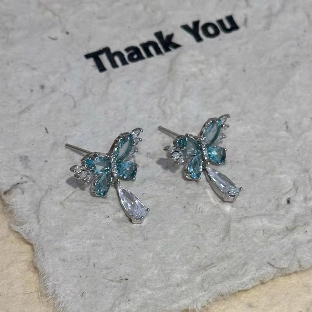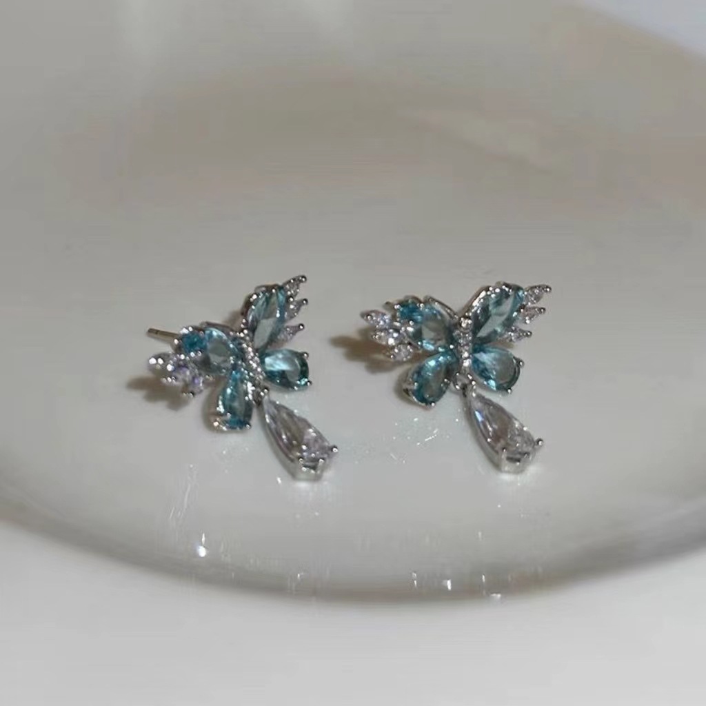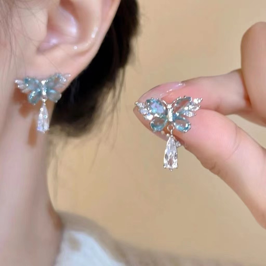 cili灵动蓝色蝴蝶浅色耳饰梦幻仙女风银针清冷感耳环女高级感耳夹