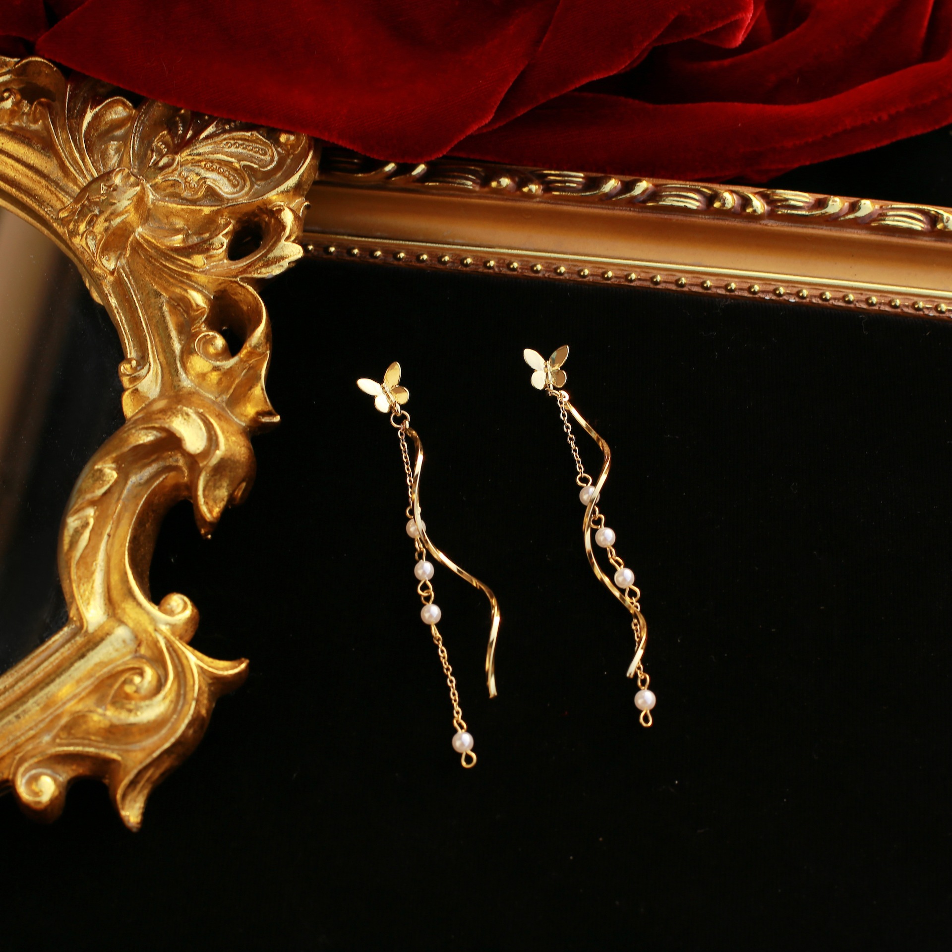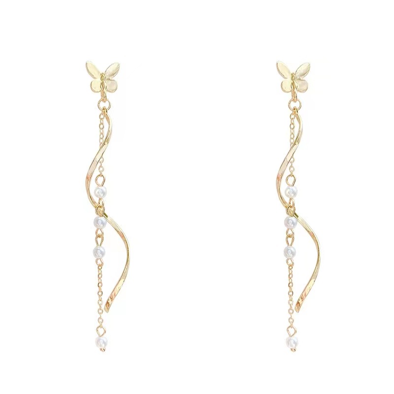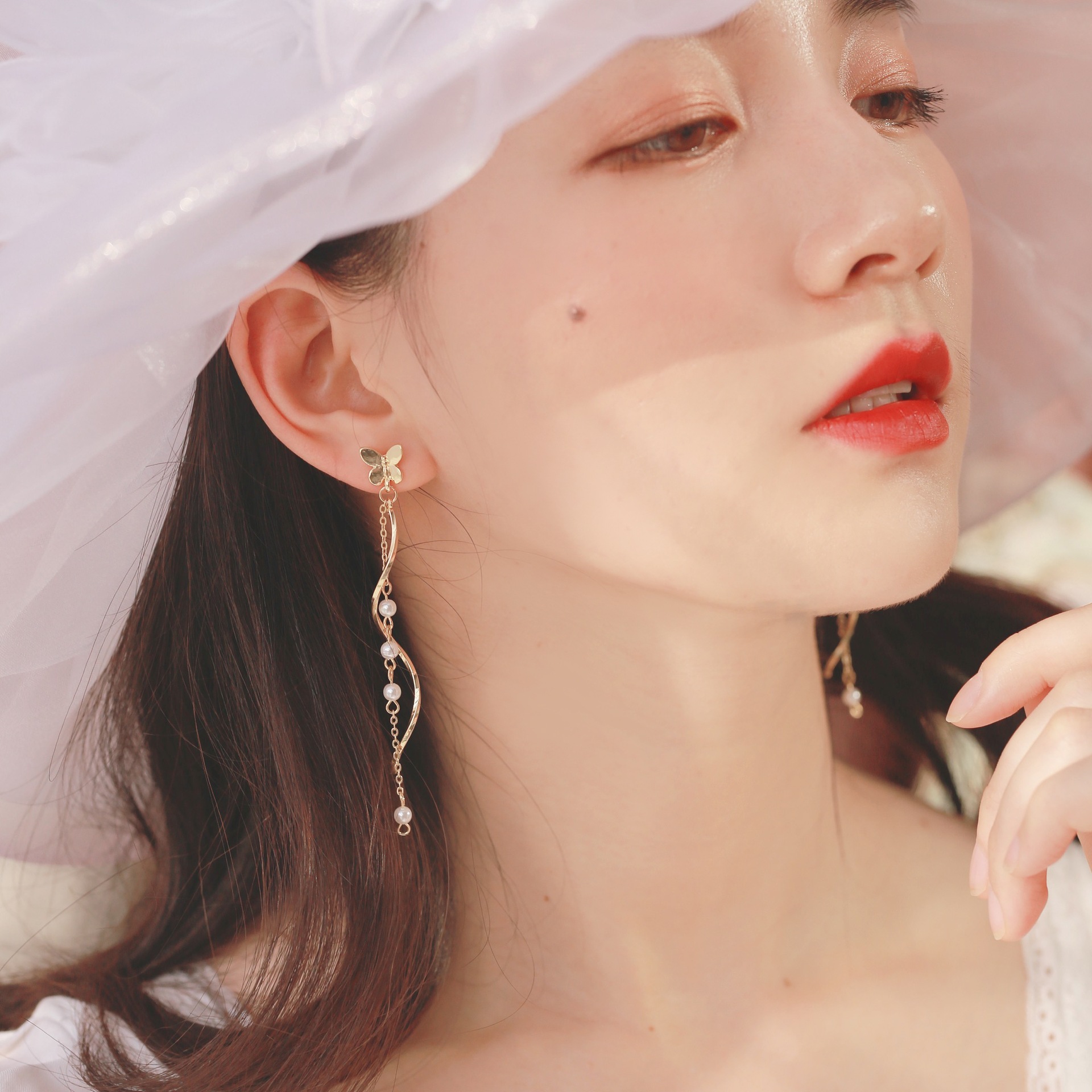 S925银针蝴蝶流苏耳环长款气质耳坠百搭时尚耳钉耳饰