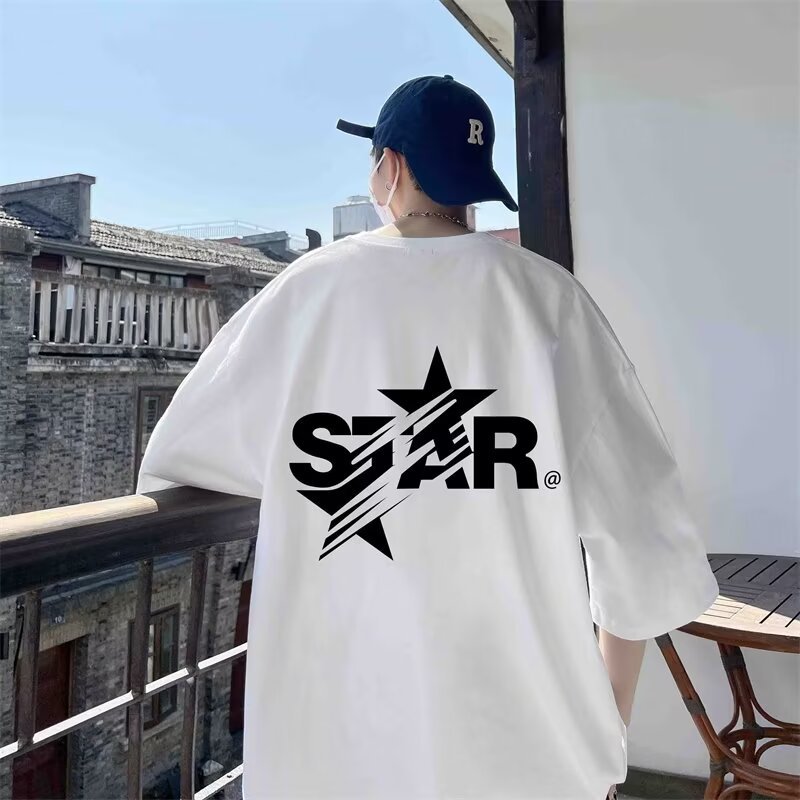 美式高街个性字母短袖T恤男夏季百搭宽松慵懒潮牌小领口上衣