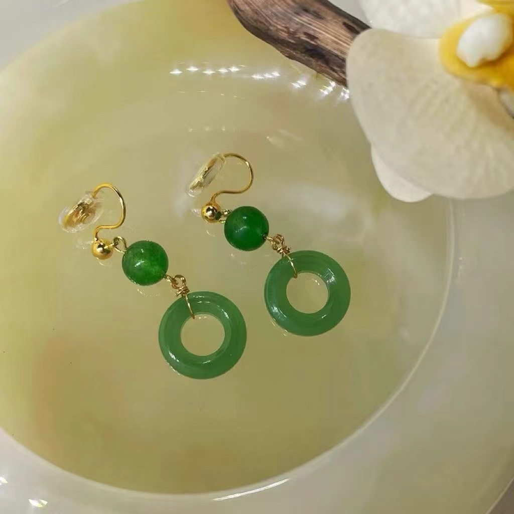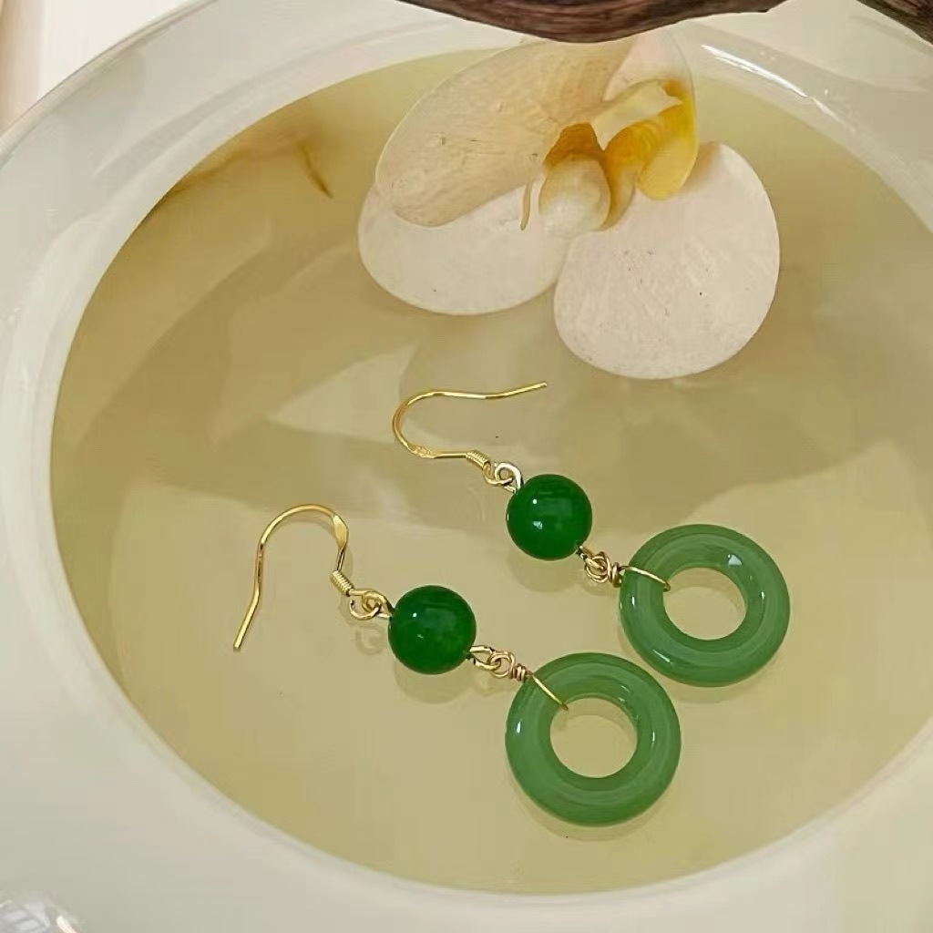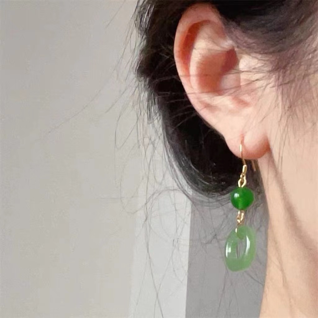 玉石平安扣耳环玉环复古新中式国风清冷古风耳饰古典汉服旗袍配饰