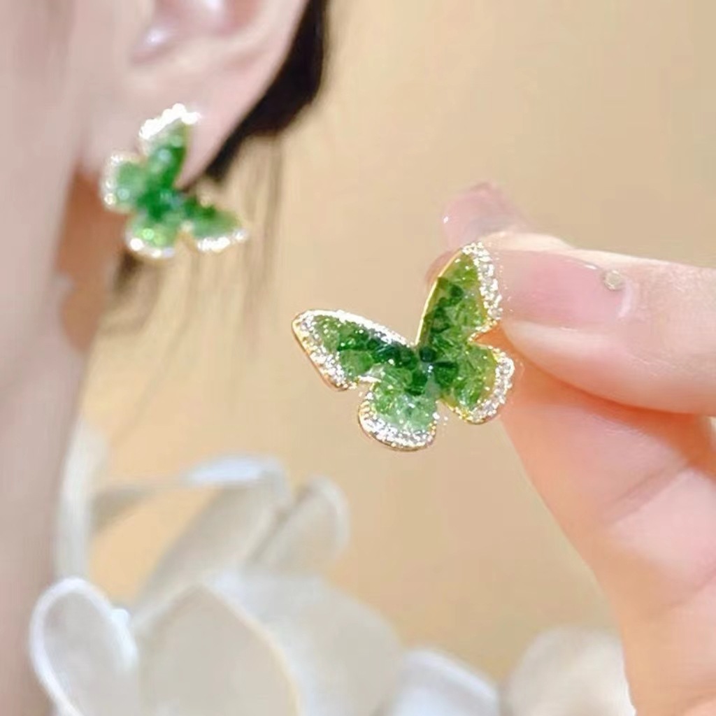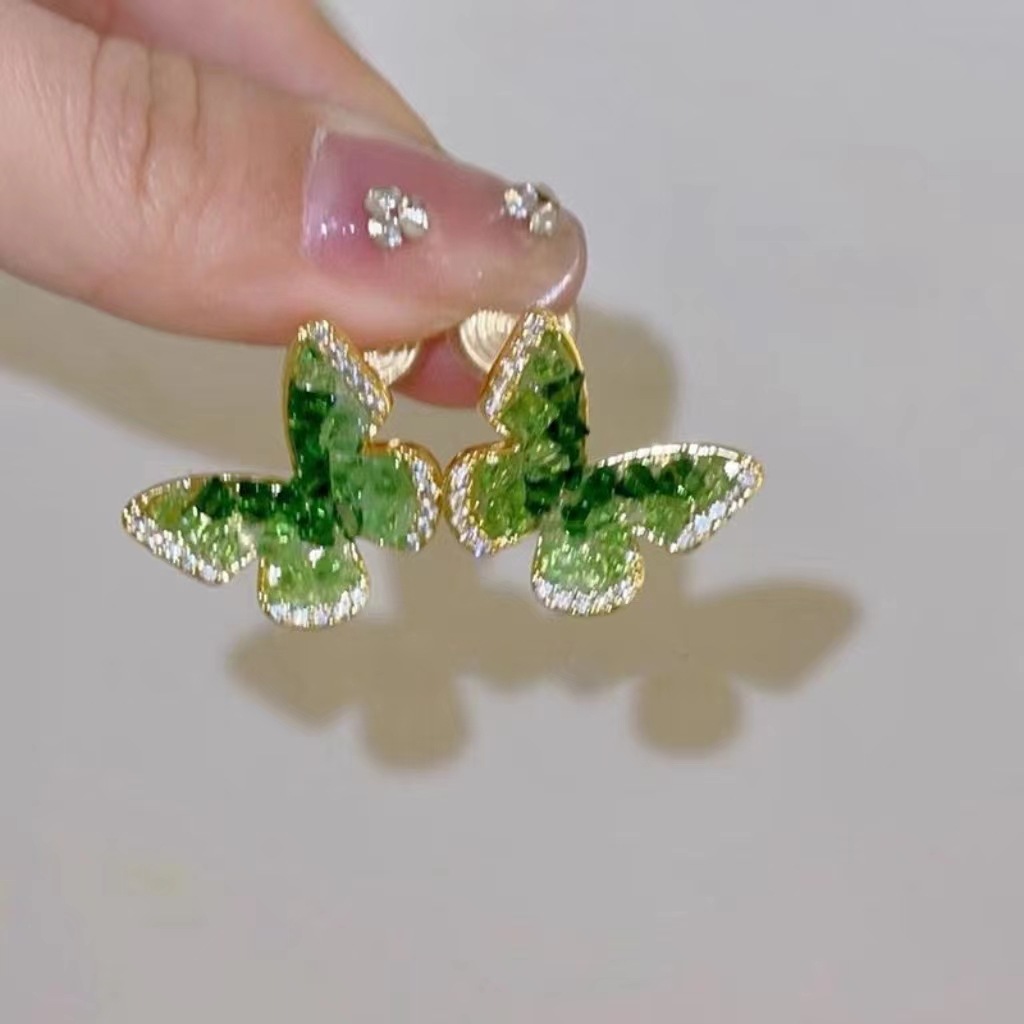 气质闪闪满锆蝴蝶结耳环女精致小众设计感轻奢耳钉新款耳饰