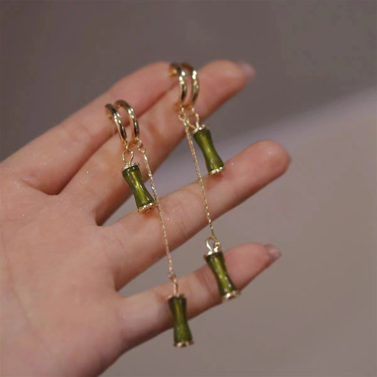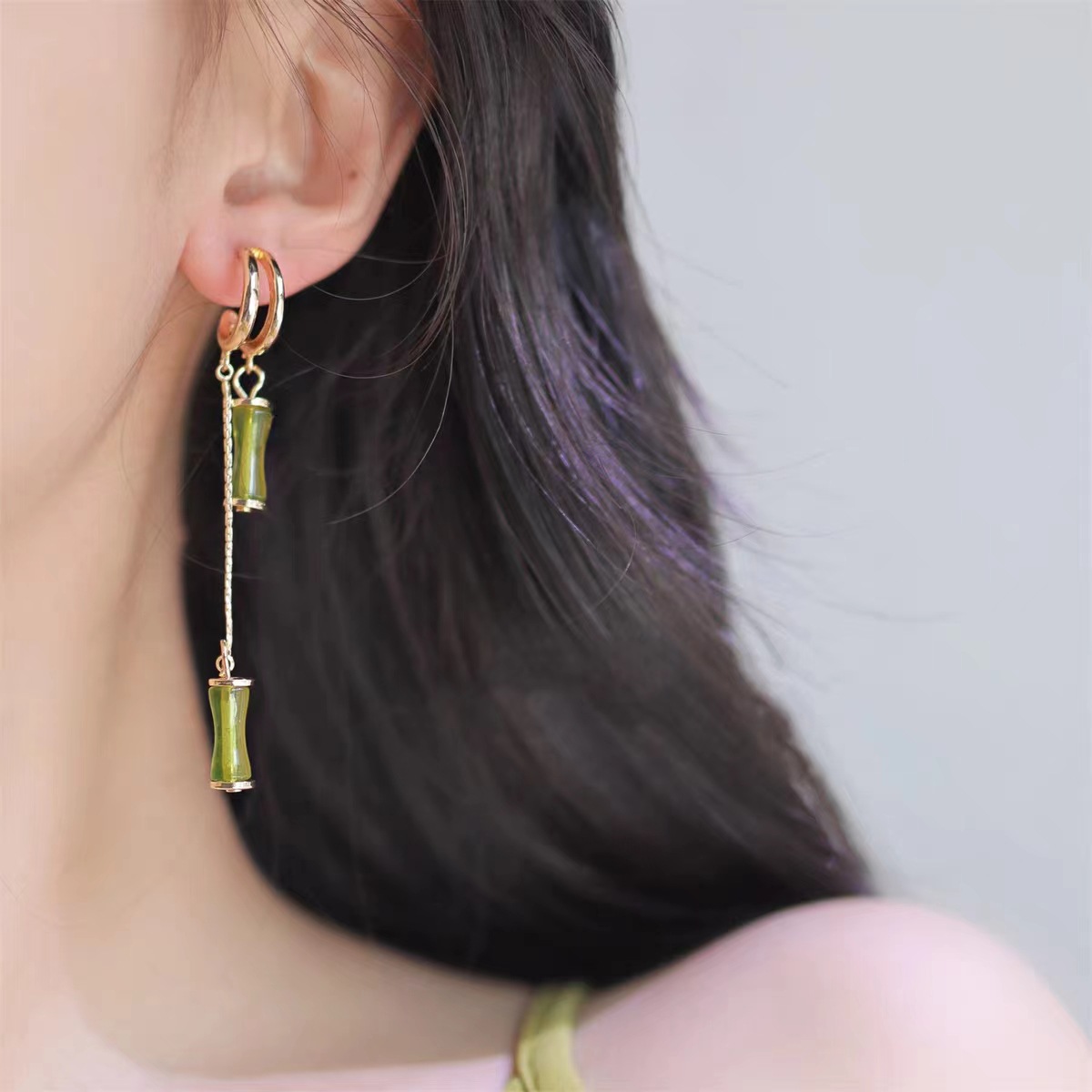 新中式竹节流苏耳钉女小众独特耳环新款爆款气质耳线古风耳饰