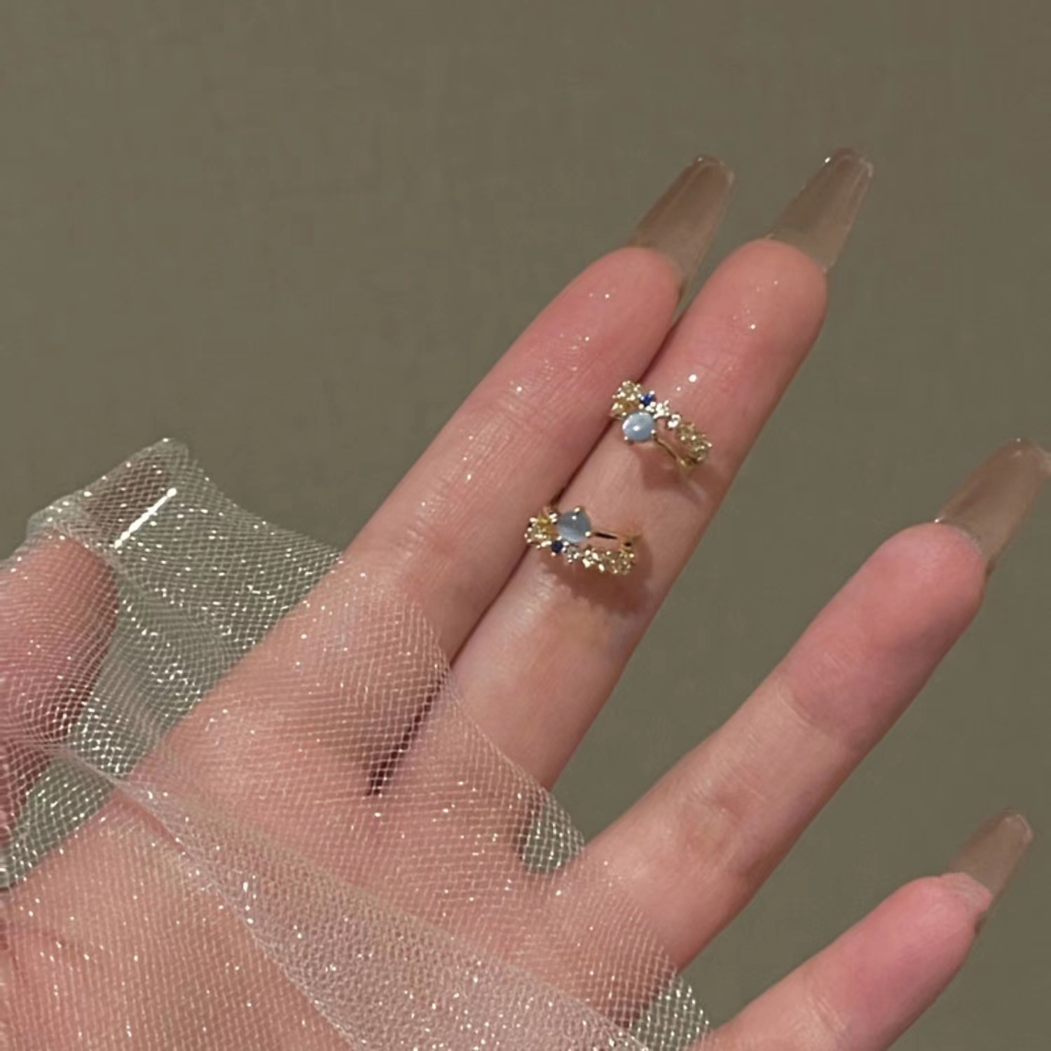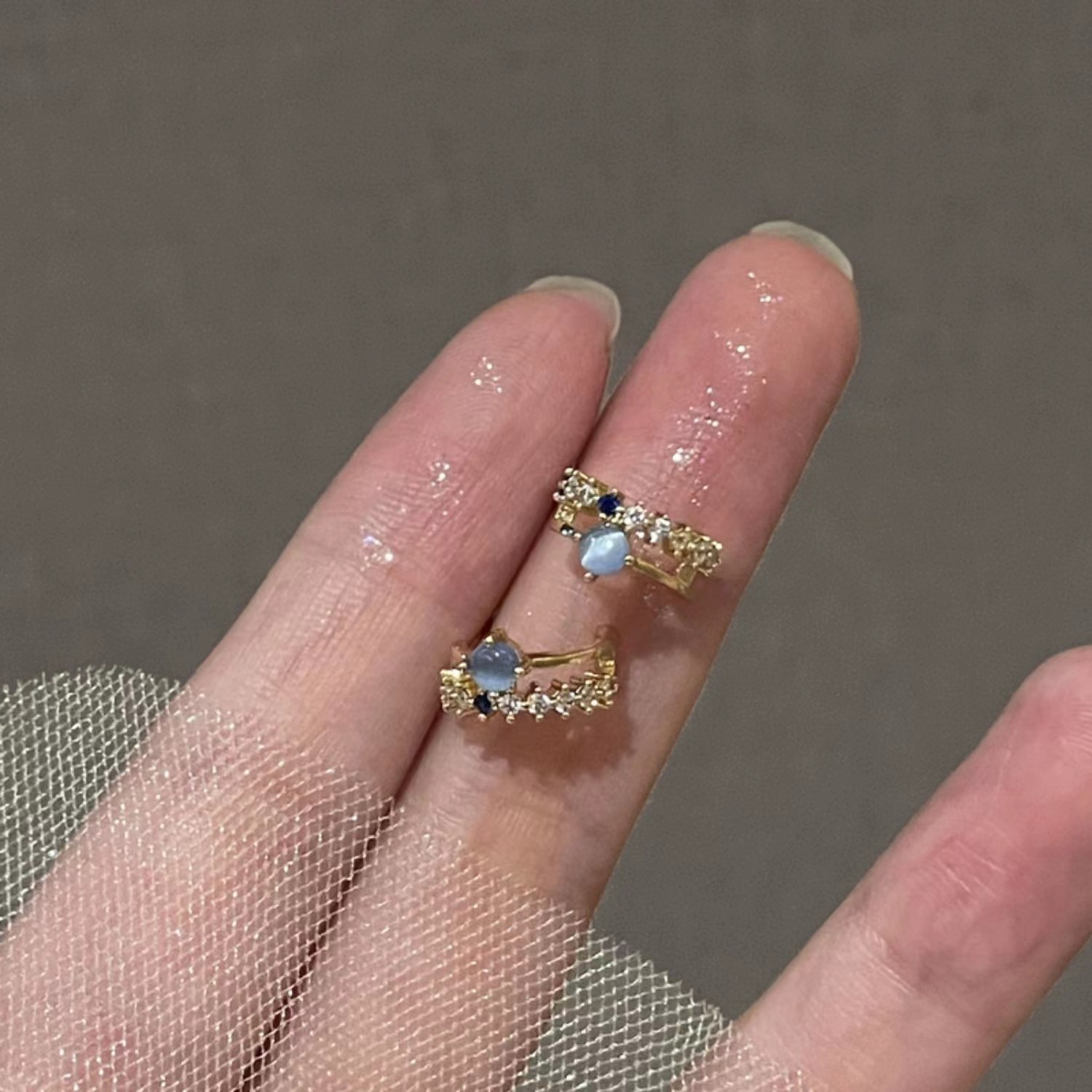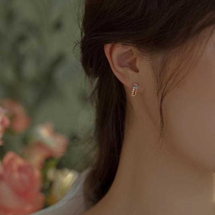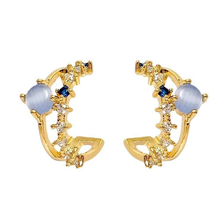仲夏夜之星法式无耳洞蓝色 猫眼小巧耳环简约蚊香盘无痛百搭耳夹女