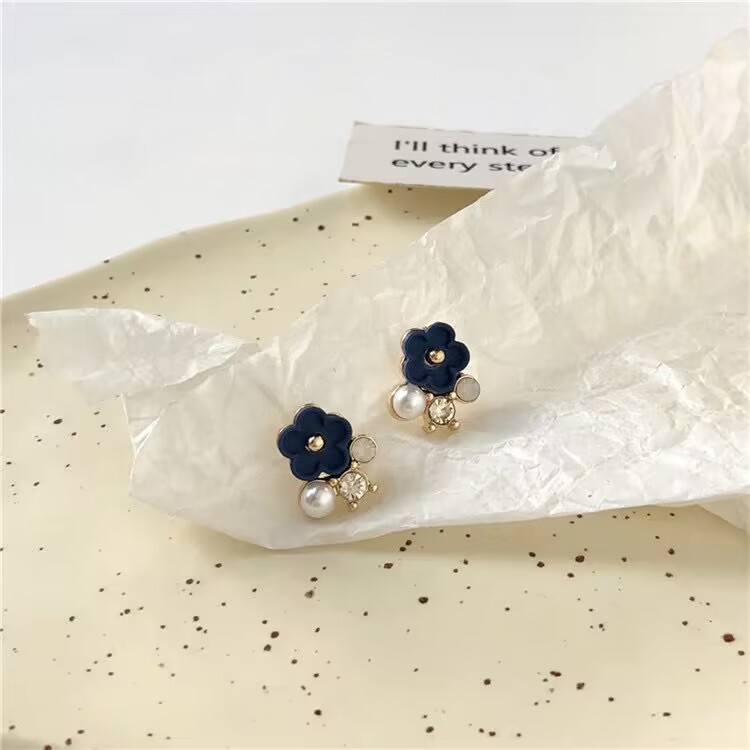 复古法式蓝色花朵无耳洞耳夹夏季耳环新款潮冷淡风简约耳饰