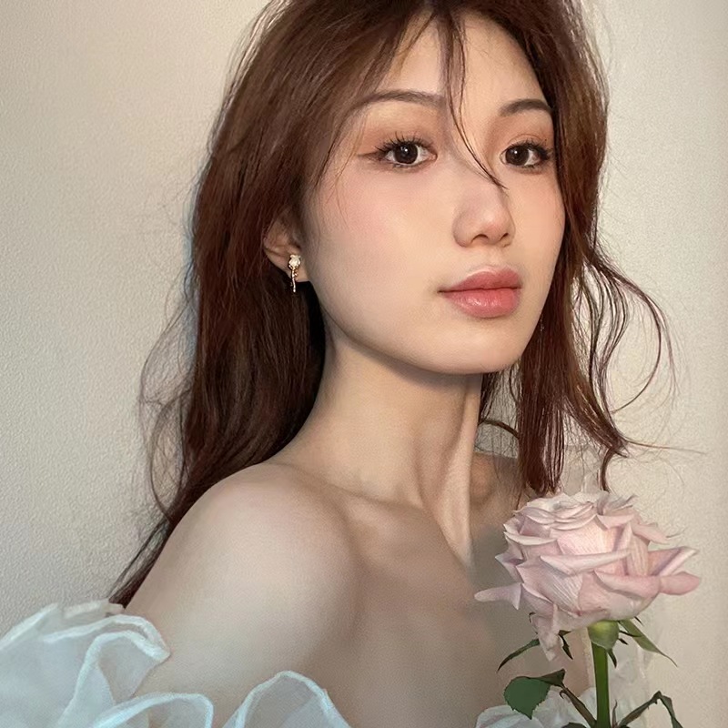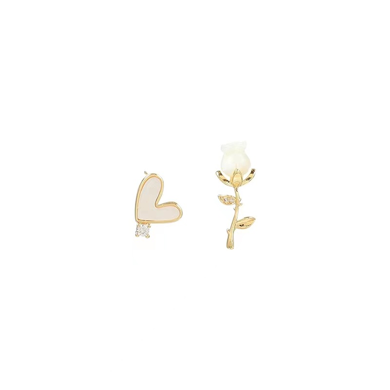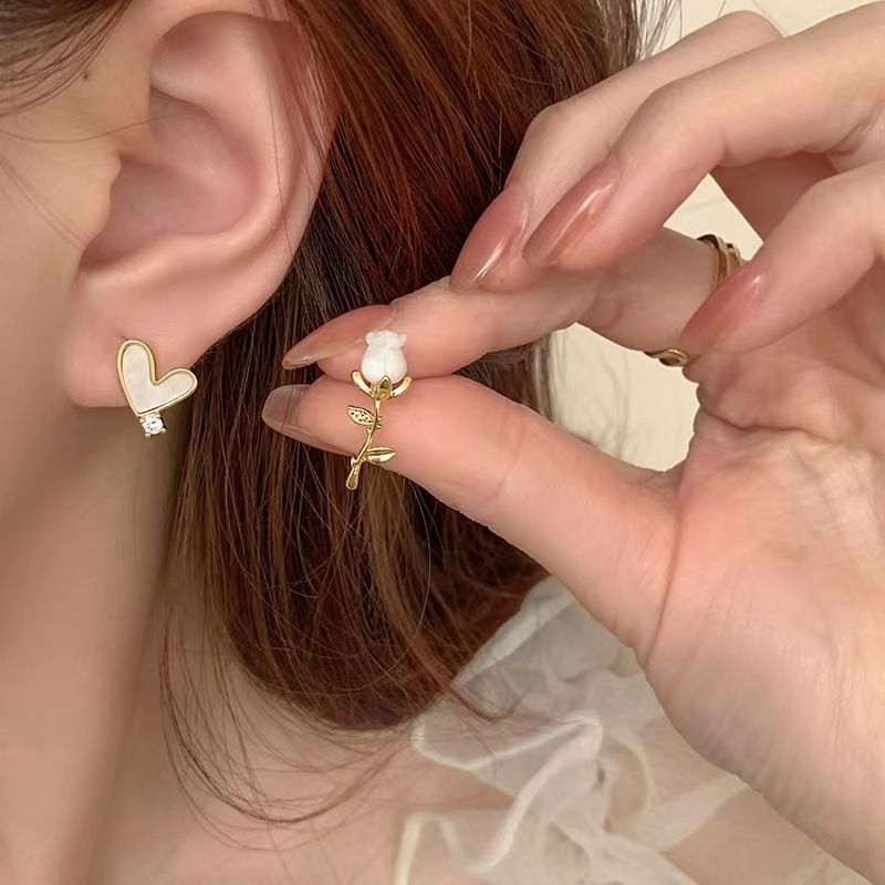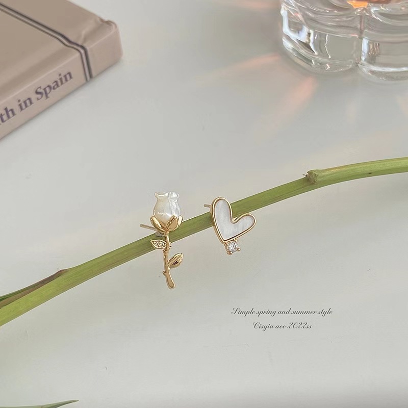 「偏爱」法式复古白色玫瑰花小巧精致耳钉环爱心不对称蚊香盘耳夹