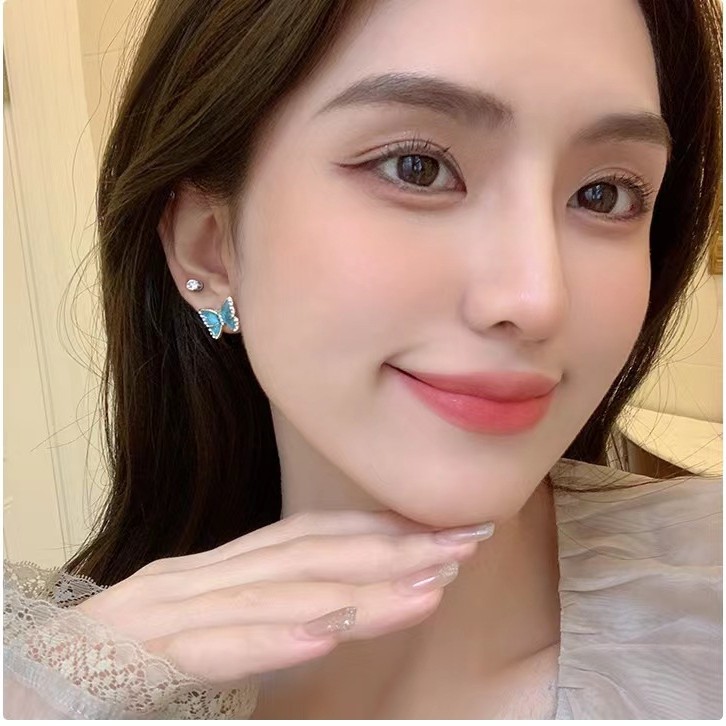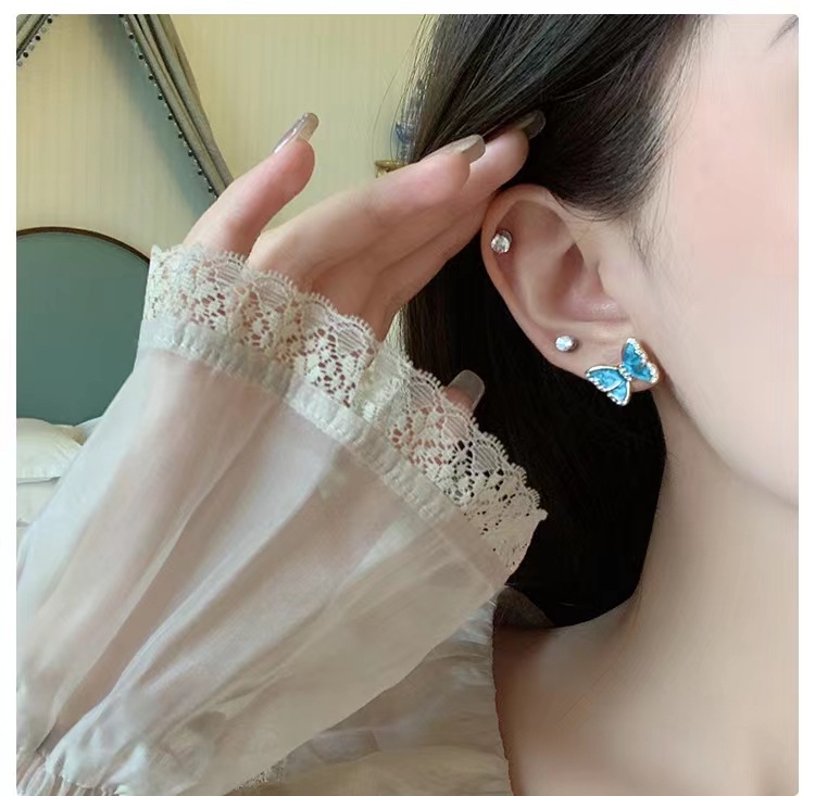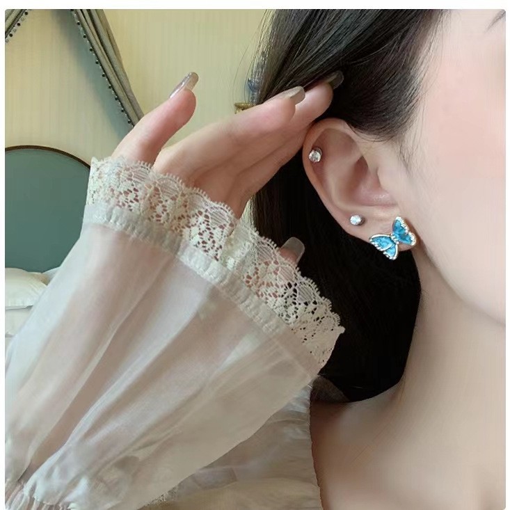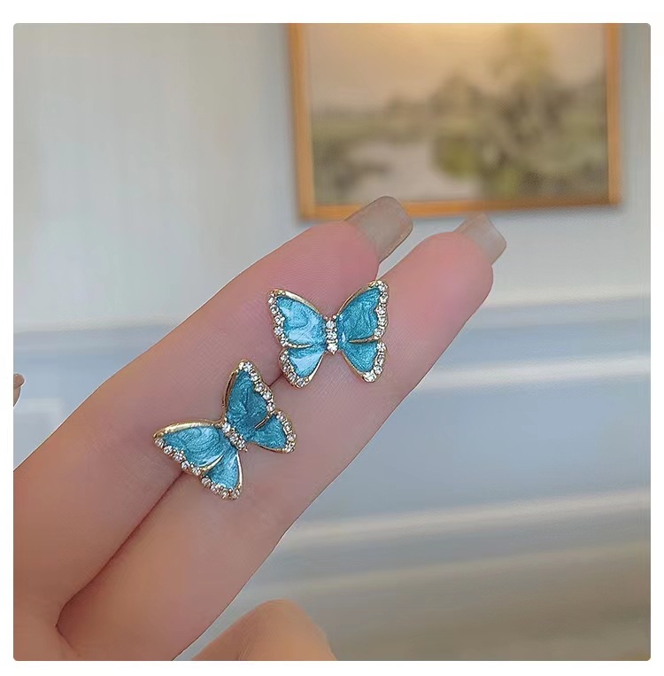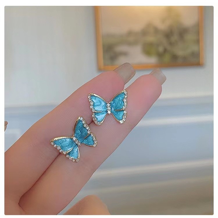 蓝蝶岛。复古港风vintage晕染水钻蝴蝶简约气质优雅清新耳钉耳环