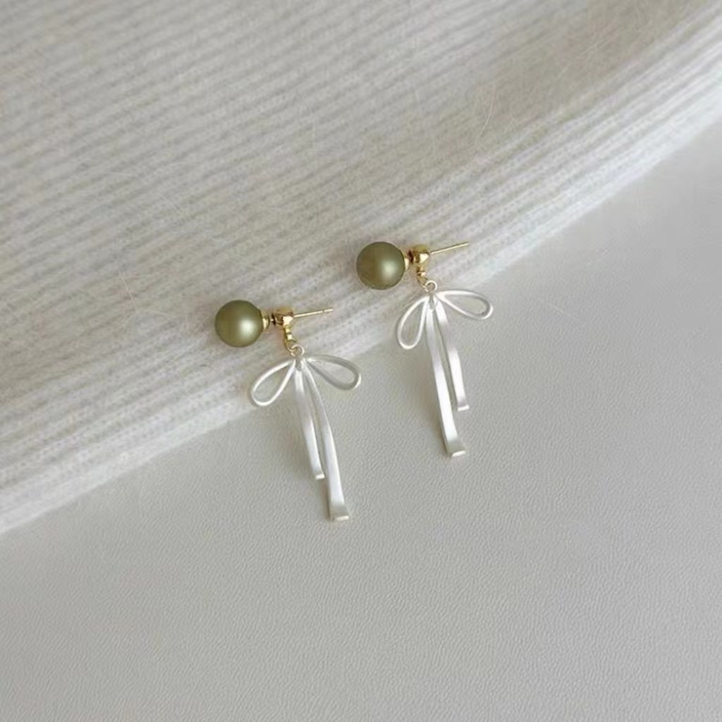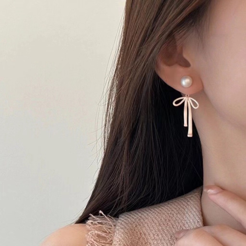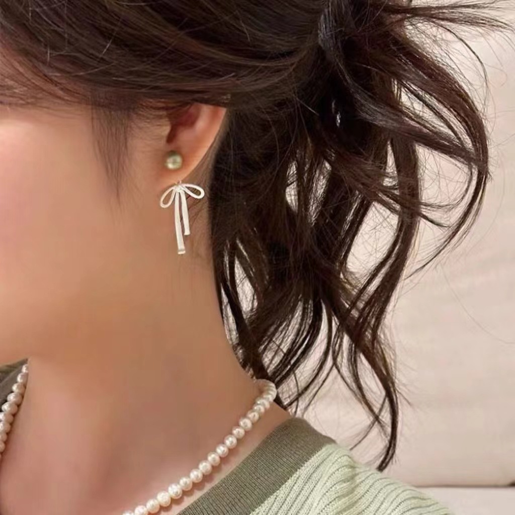 「少女心事」法式粉色蝴蝶结珍珠耳钉女春夏新款轻奢耳饰精致