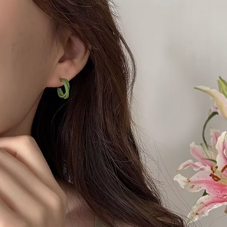 简约绿色蝴蝶结耳钉女小巧百搭可爱耳环年新款潮网红耳饰爆款