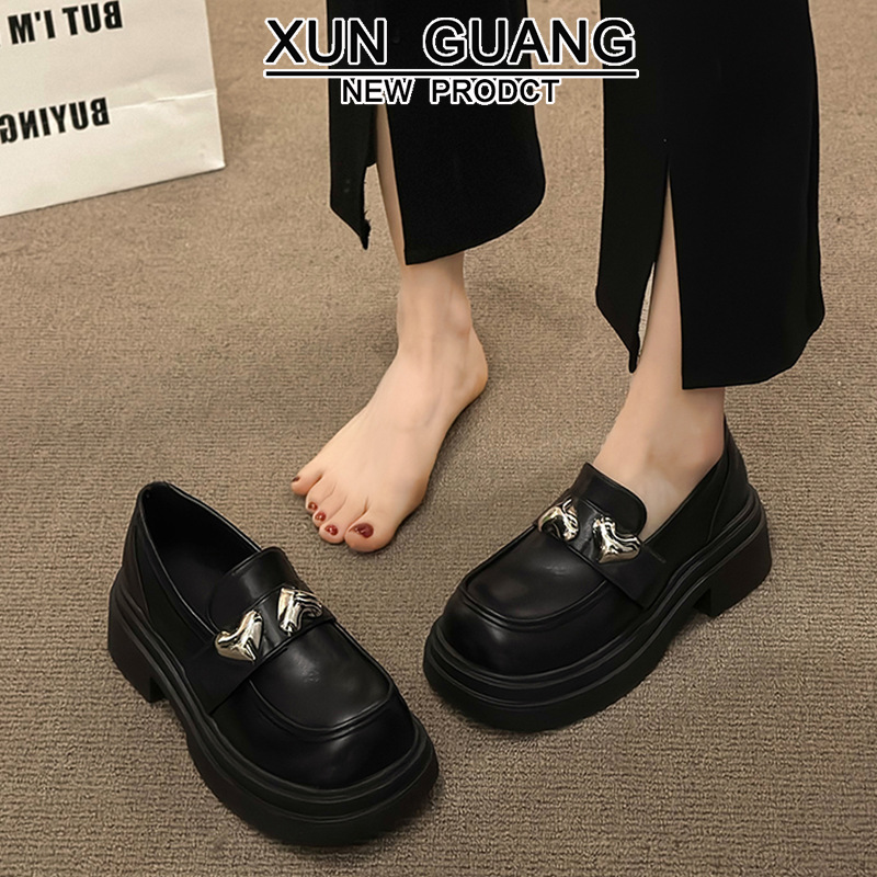黑色厚底一脚蹬乐福鞋女春季新款百搭英伦风小皮鞋日系jk单鞋