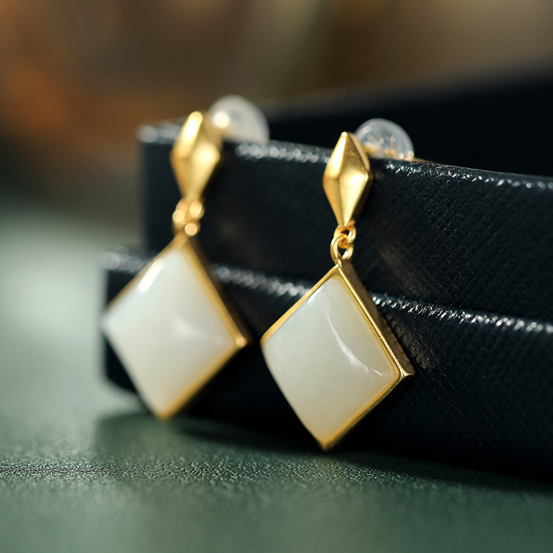 个性几何和田玉18k镀金耳钉设计小众轻奢镀925纯银女士耳坠