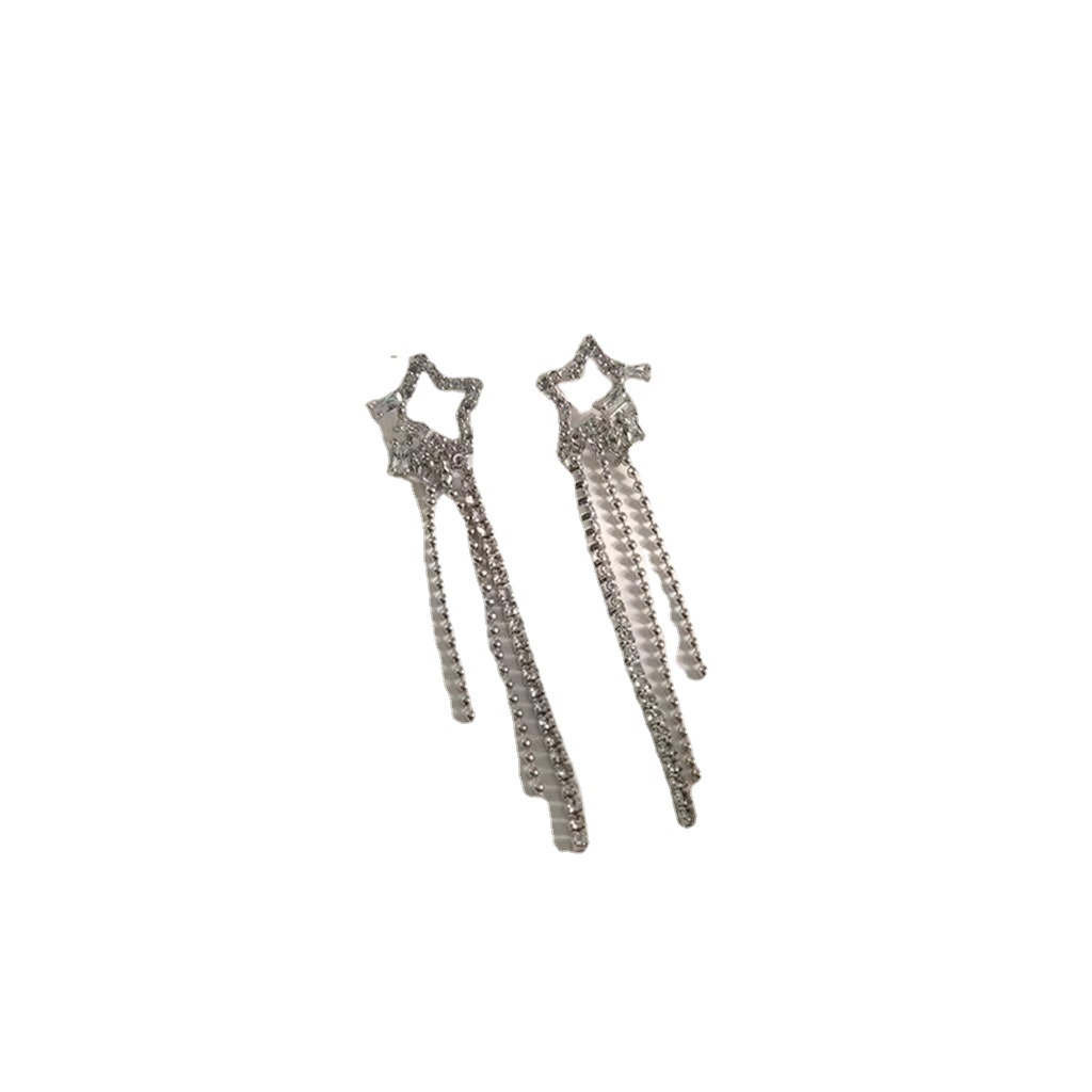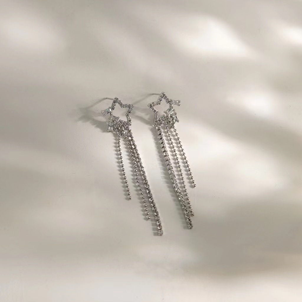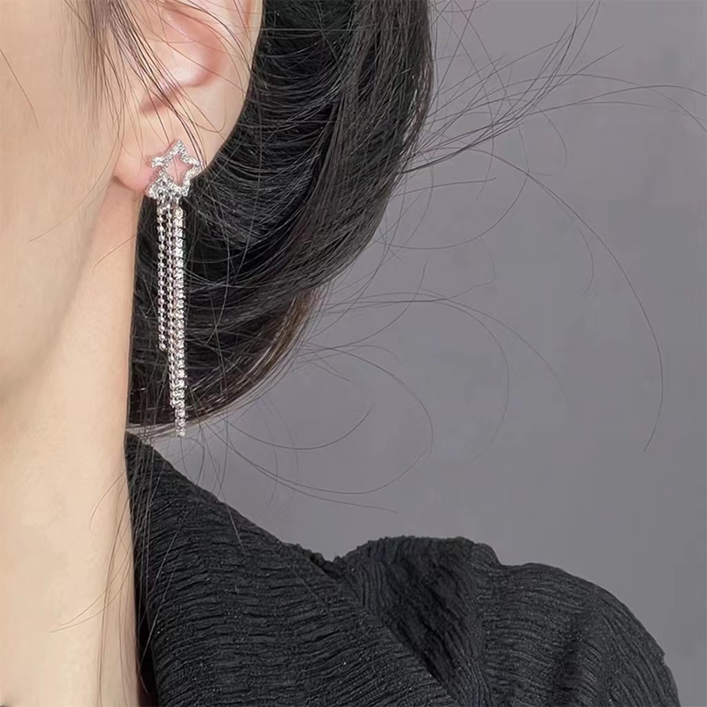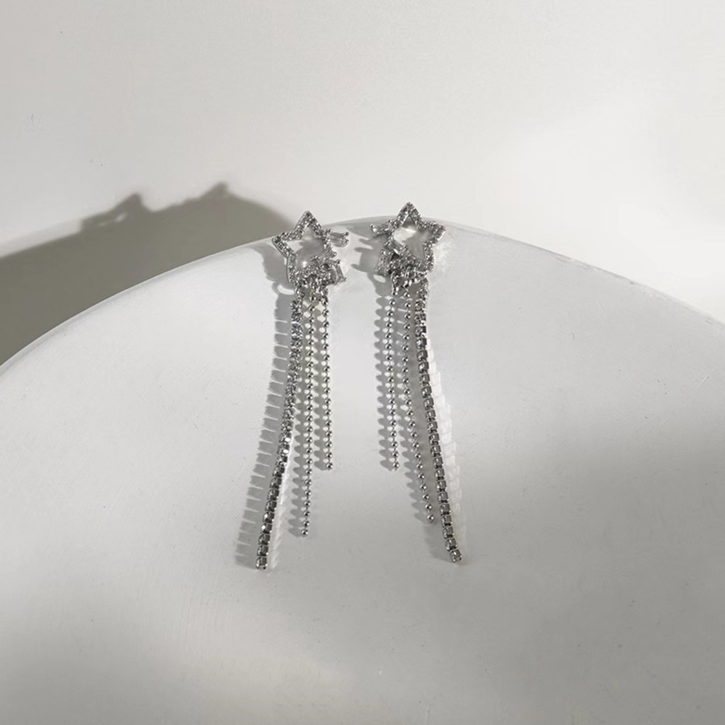 「奕星」长款流苏耳环锆石星星蚊香盘耳夹无耳洞女设计夏演出耳饰
