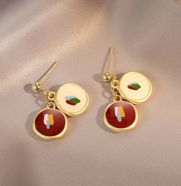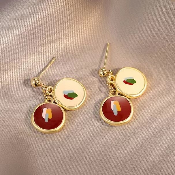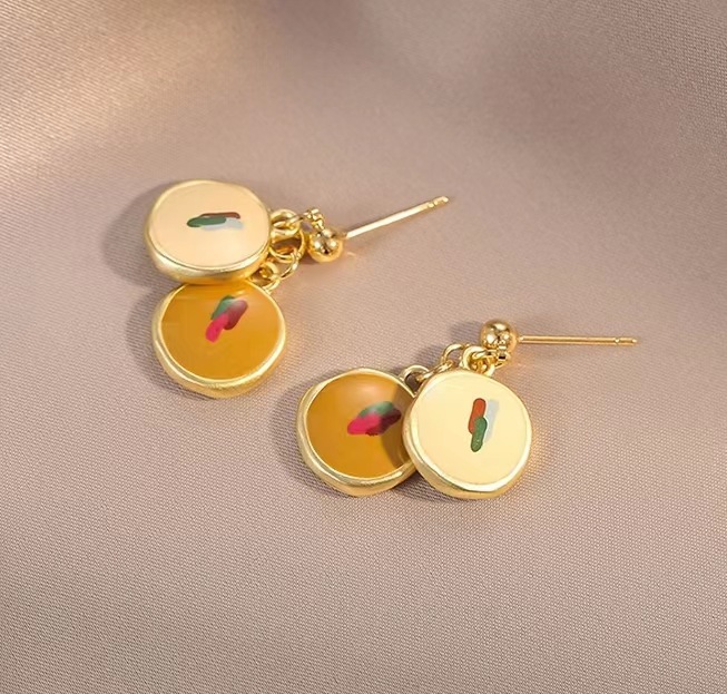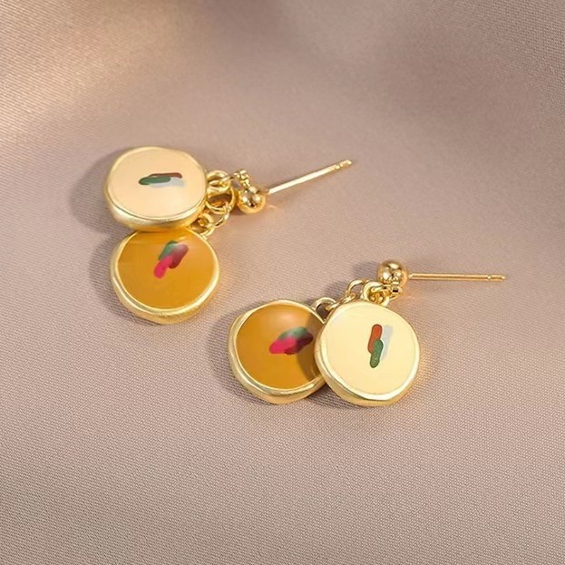 油画少女 暖色 925银针一对