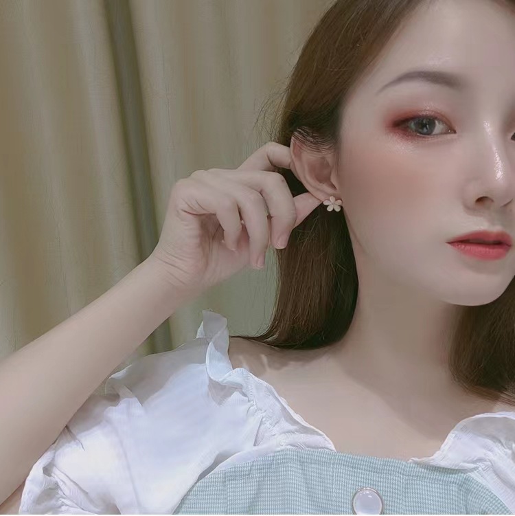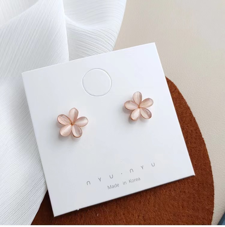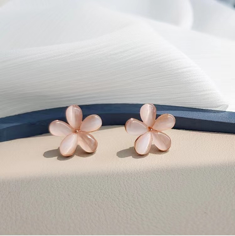 超仙猫眼石花朵耳钉女夏季轻奢小众设计耳环年新款潮茶系耳饰