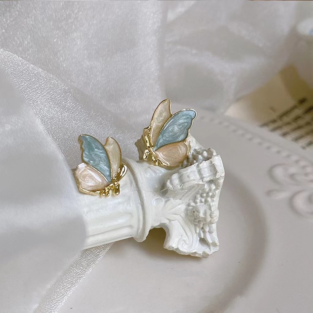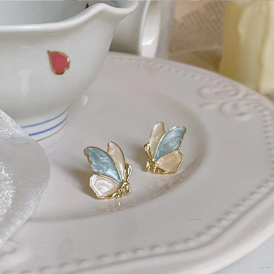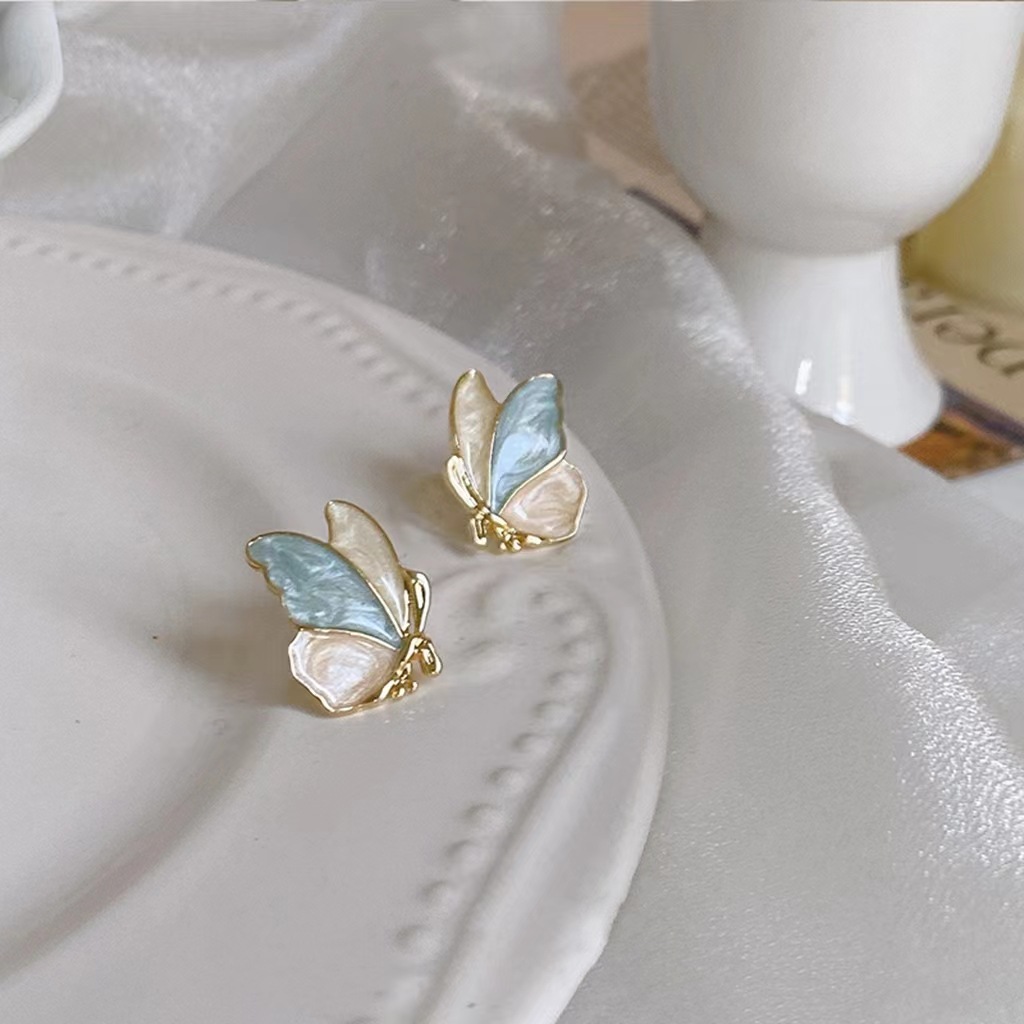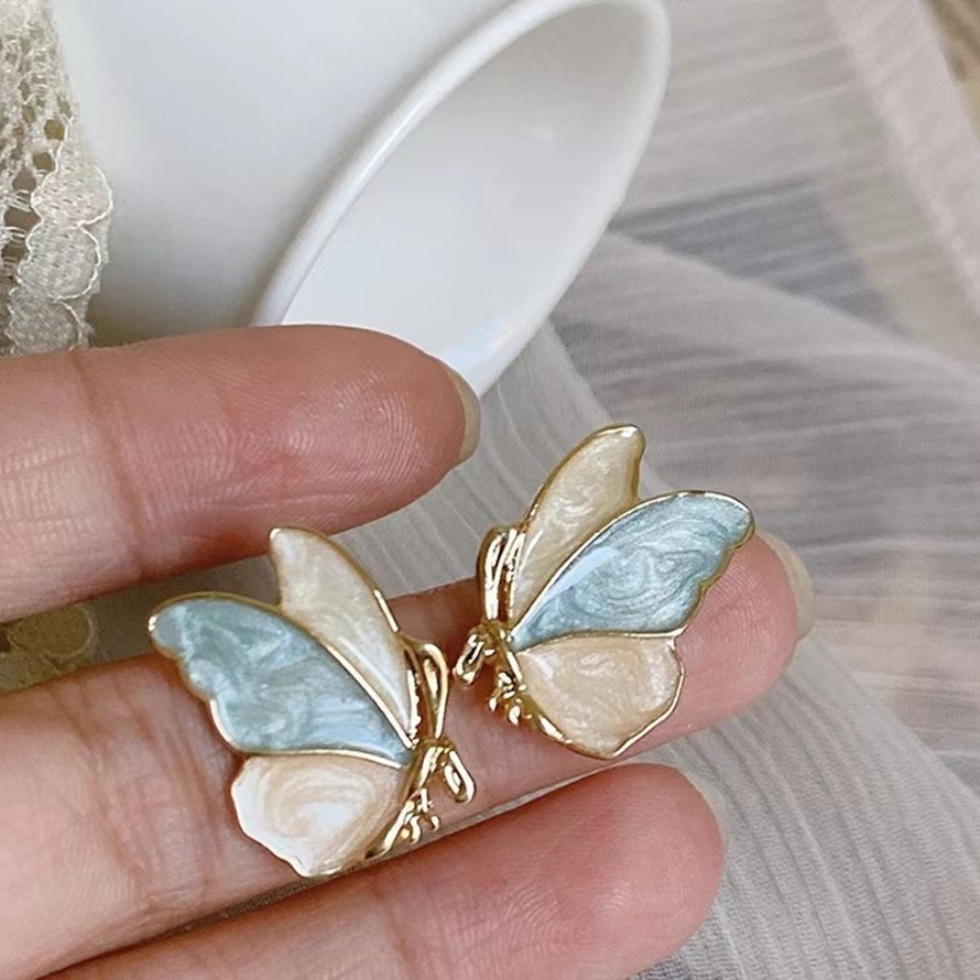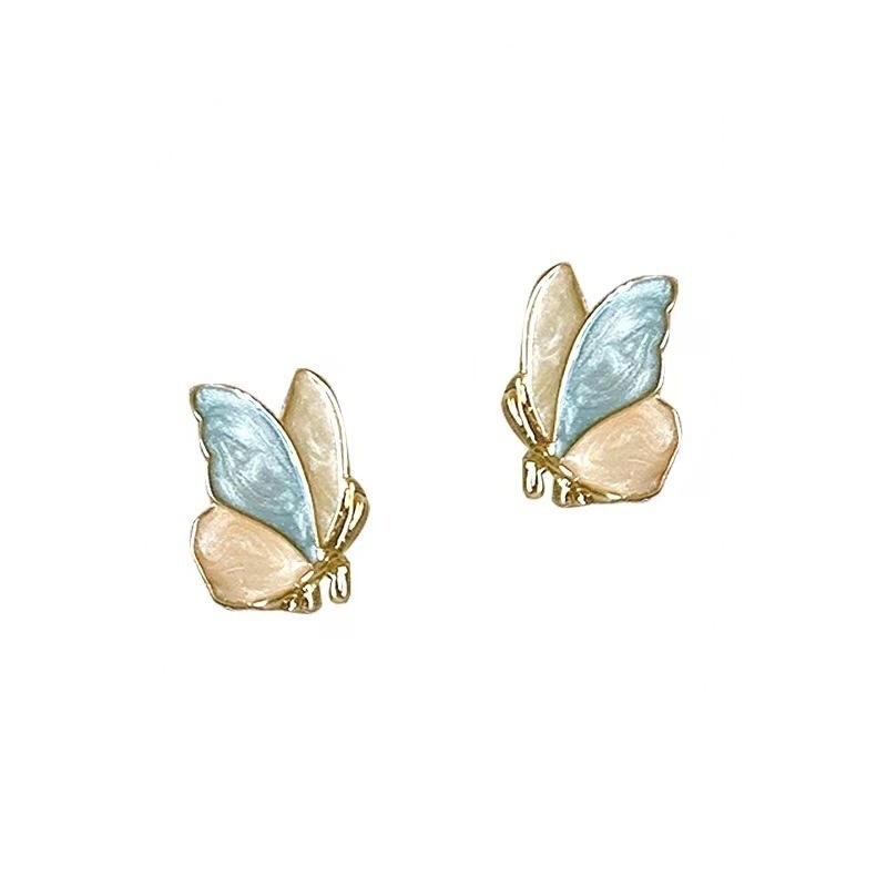 彩色滴釉蝴蝶精致耳环韩国气质优雅百搭配饰女耳饰耳钉925银针