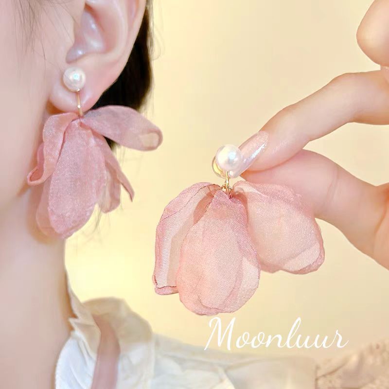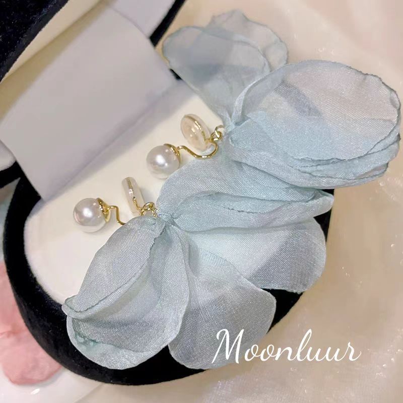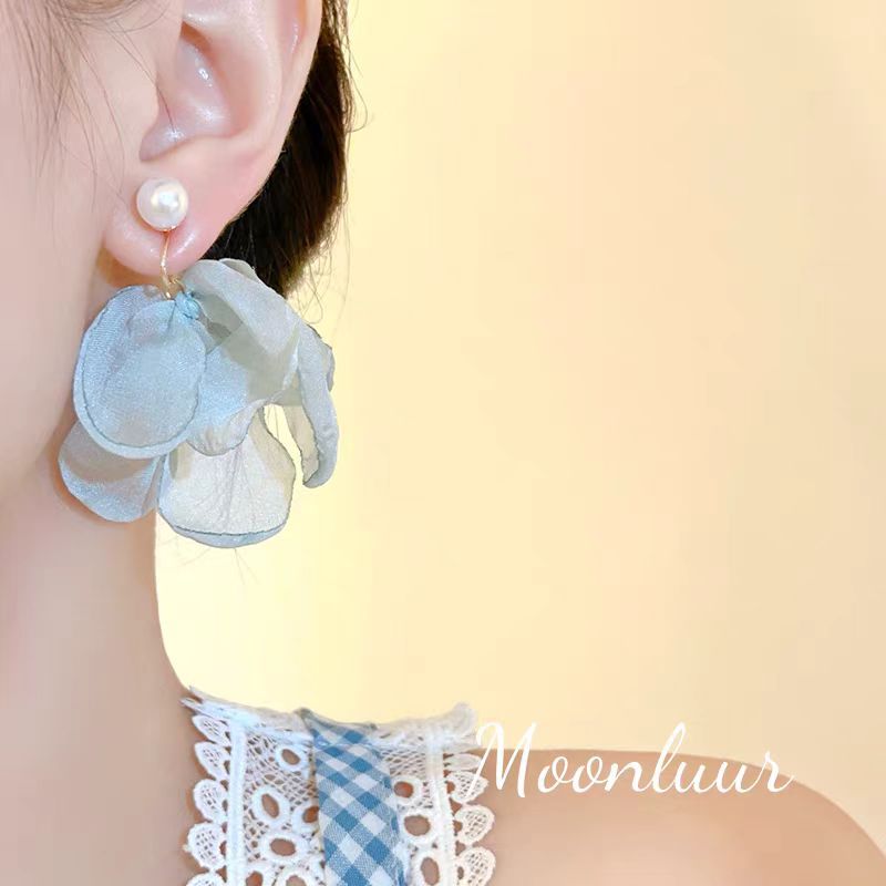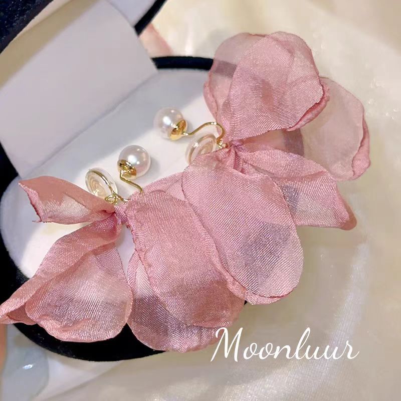仙气薄纱花朵夸张度假无耳洞耳夹高级感显脸小耳环女新款爆款