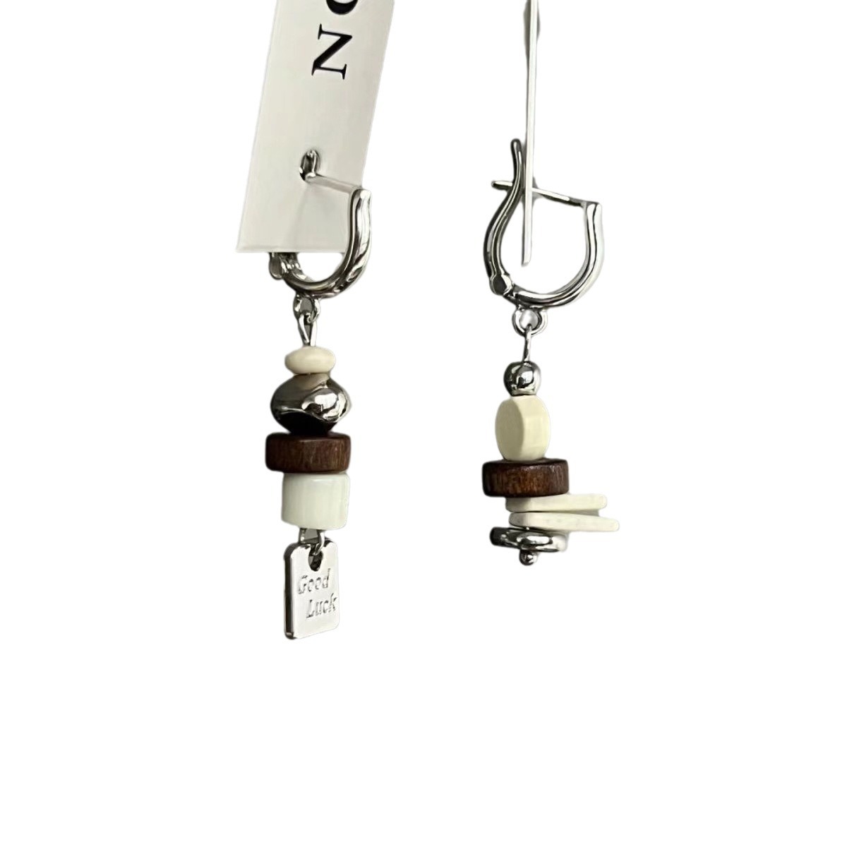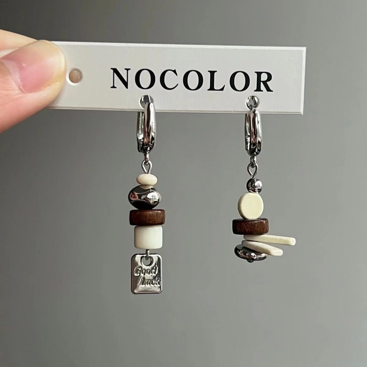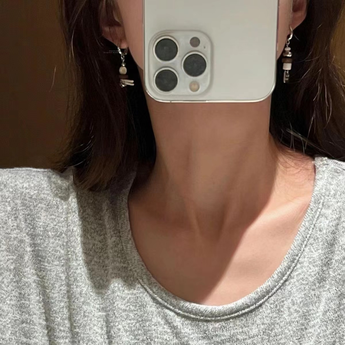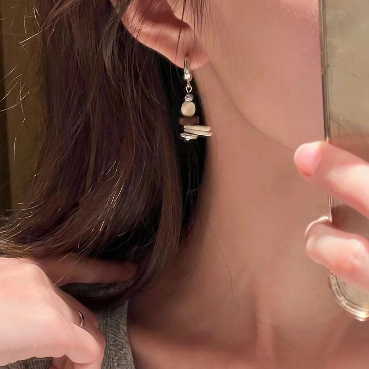 木块 百搭原木调耳扣新中式古风气质小众串珠耳环女复古耳饰
