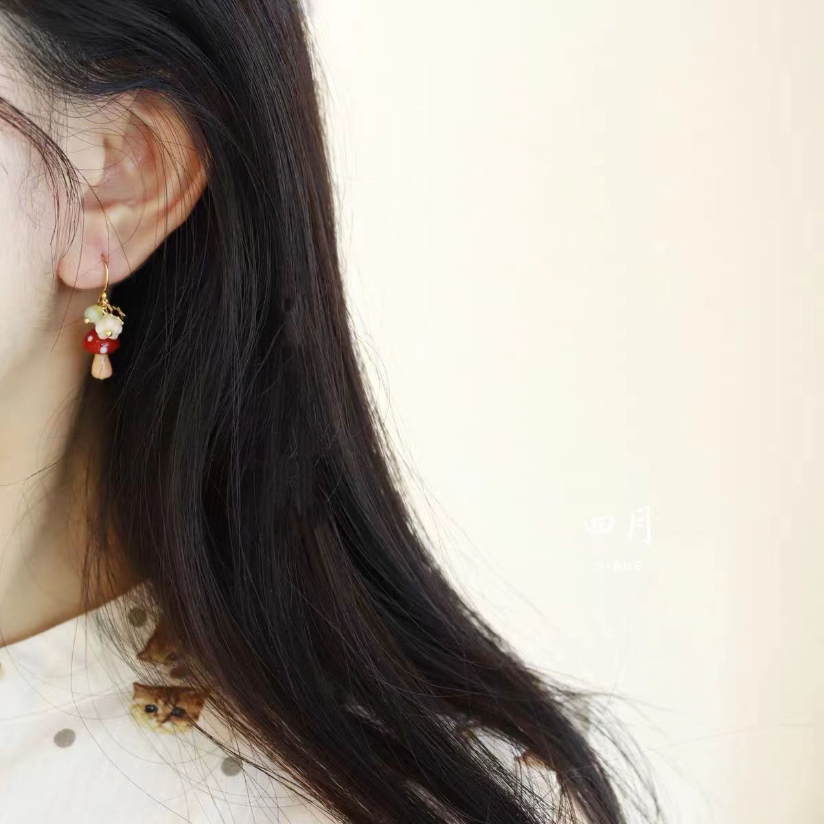 林间小蘑菇 可可爱爱~原创手作夏日清新鬼马天然石蘑菇耳环耳夹