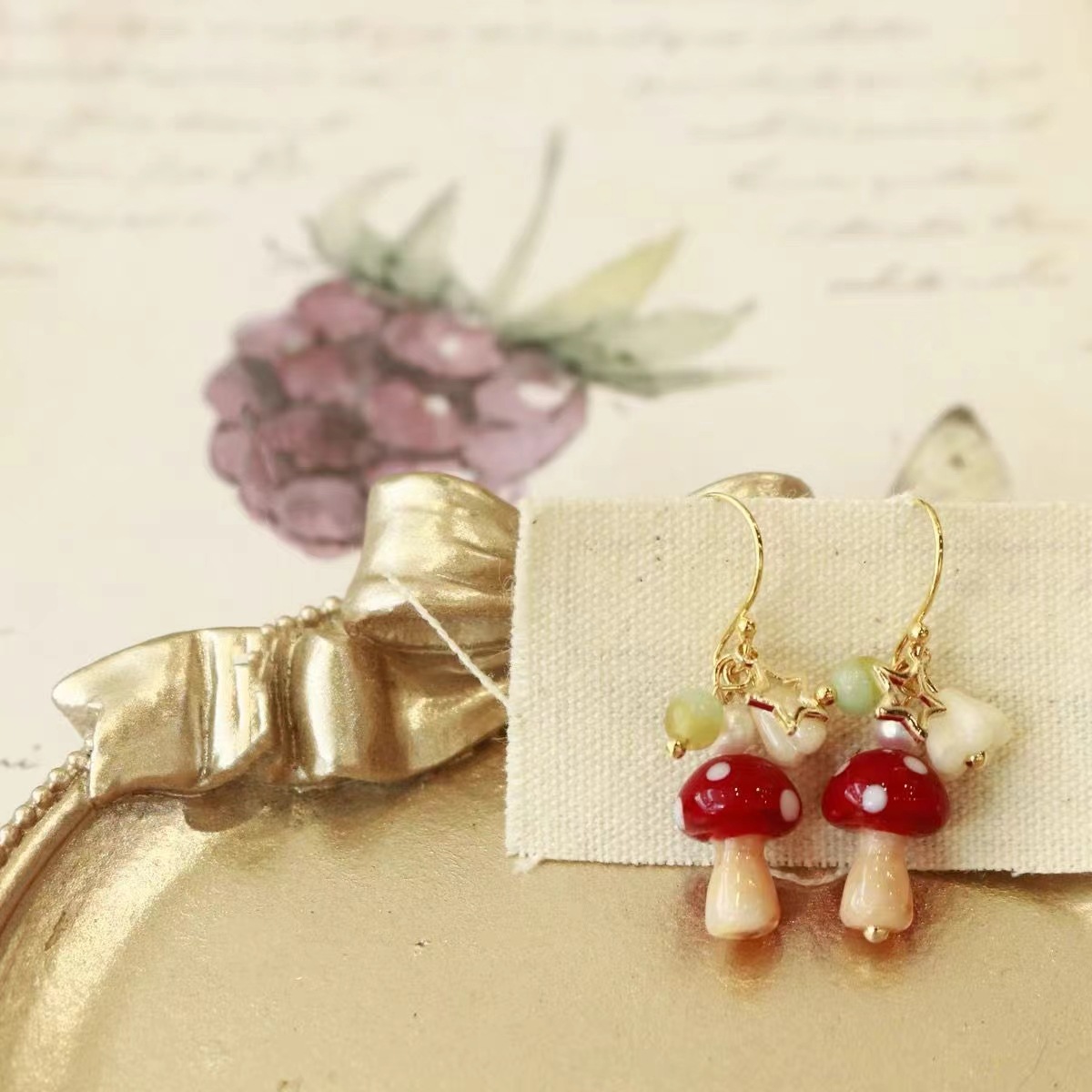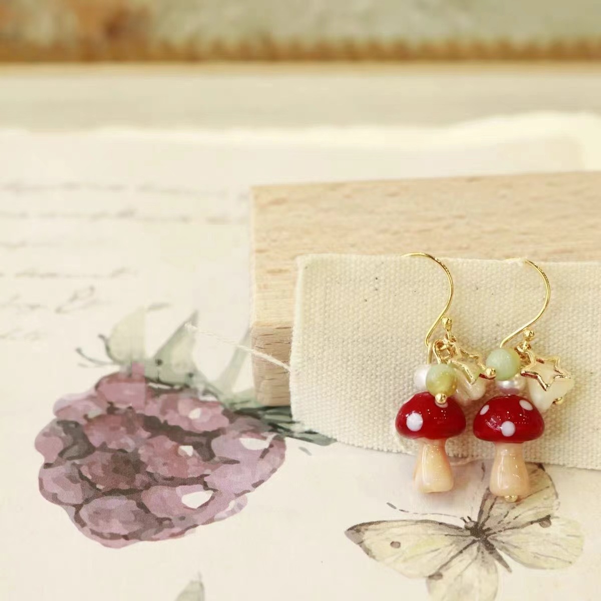 林间小蘑菇 耳钩一对