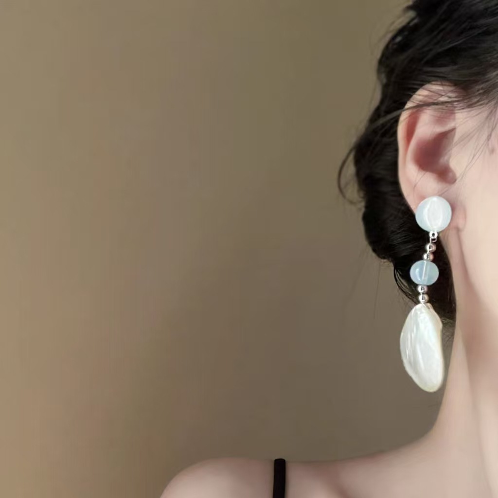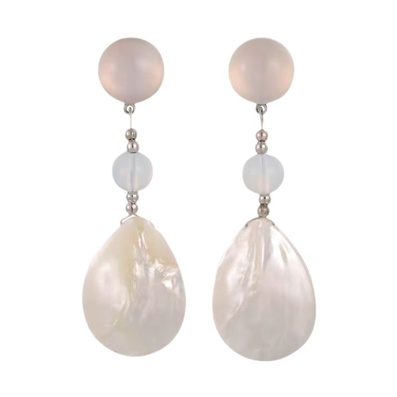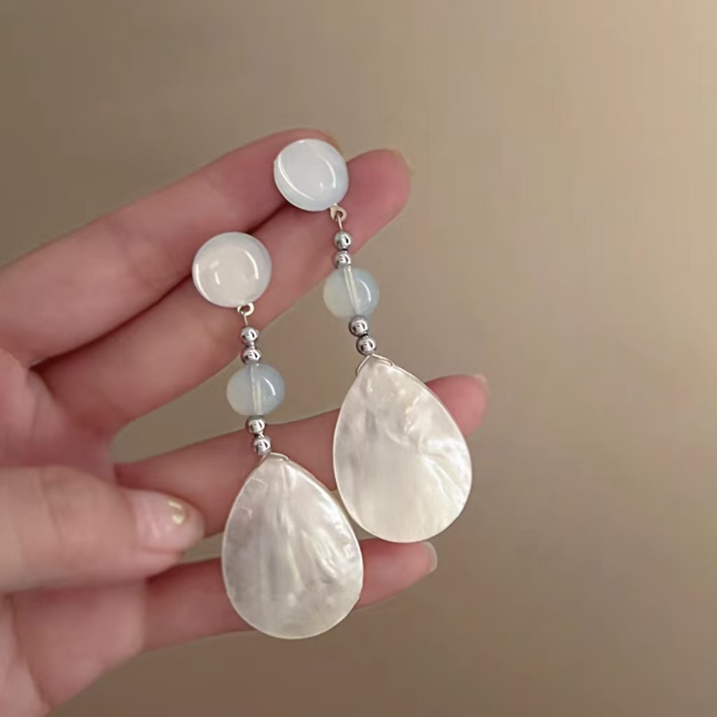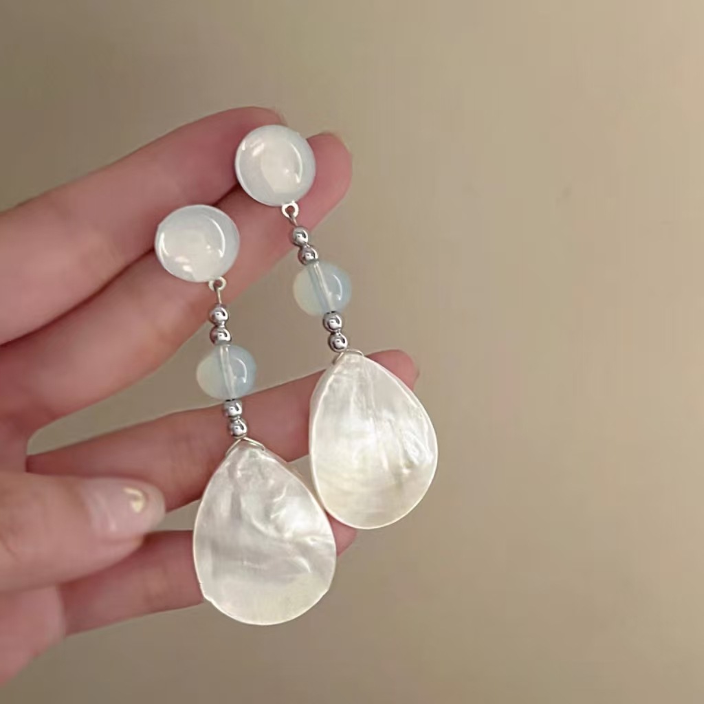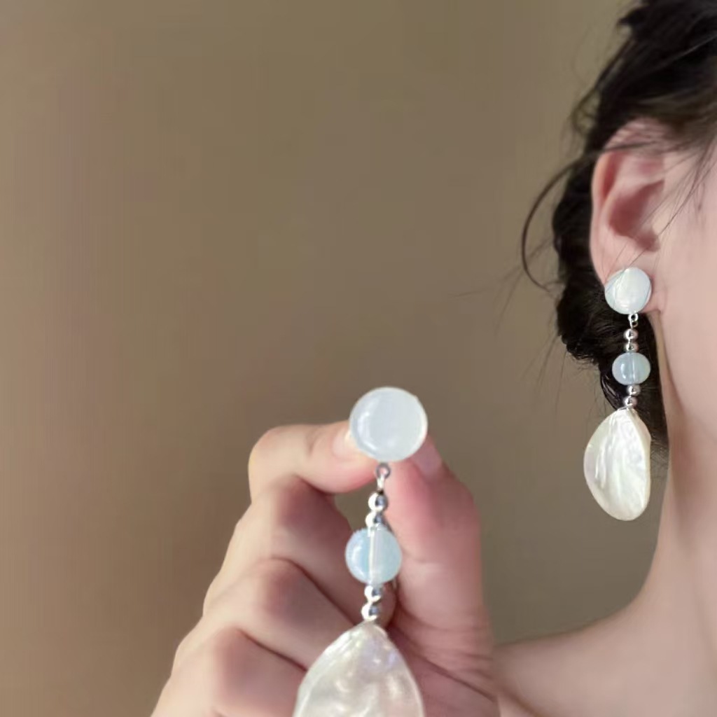 「寒烟拢月」清冷感水滴贝壳流苏耳钉新款小众高级感夏天耳饰