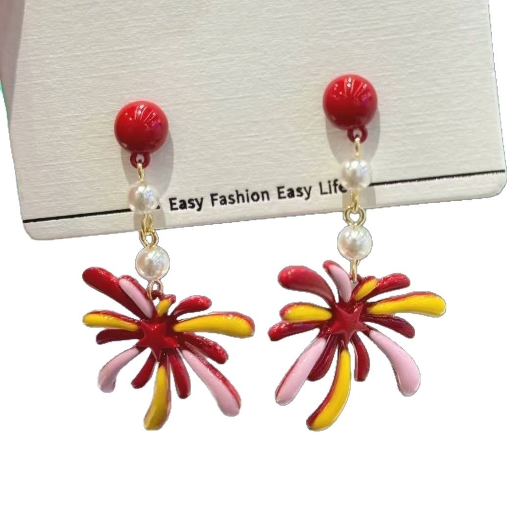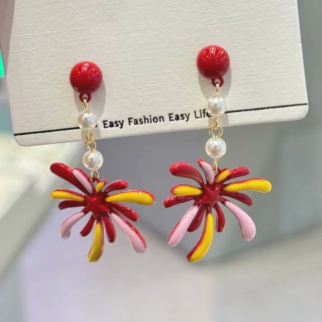 手作设计烟花系列耳环氛围感小众耳钉新年国风气质无耳洞耳夹耳饰