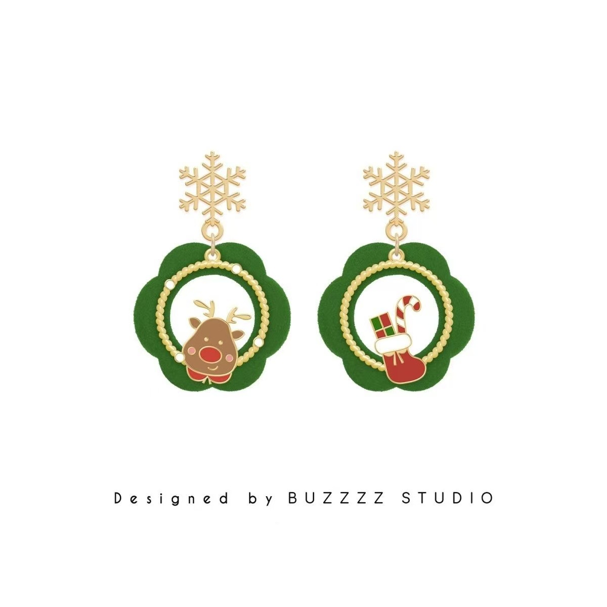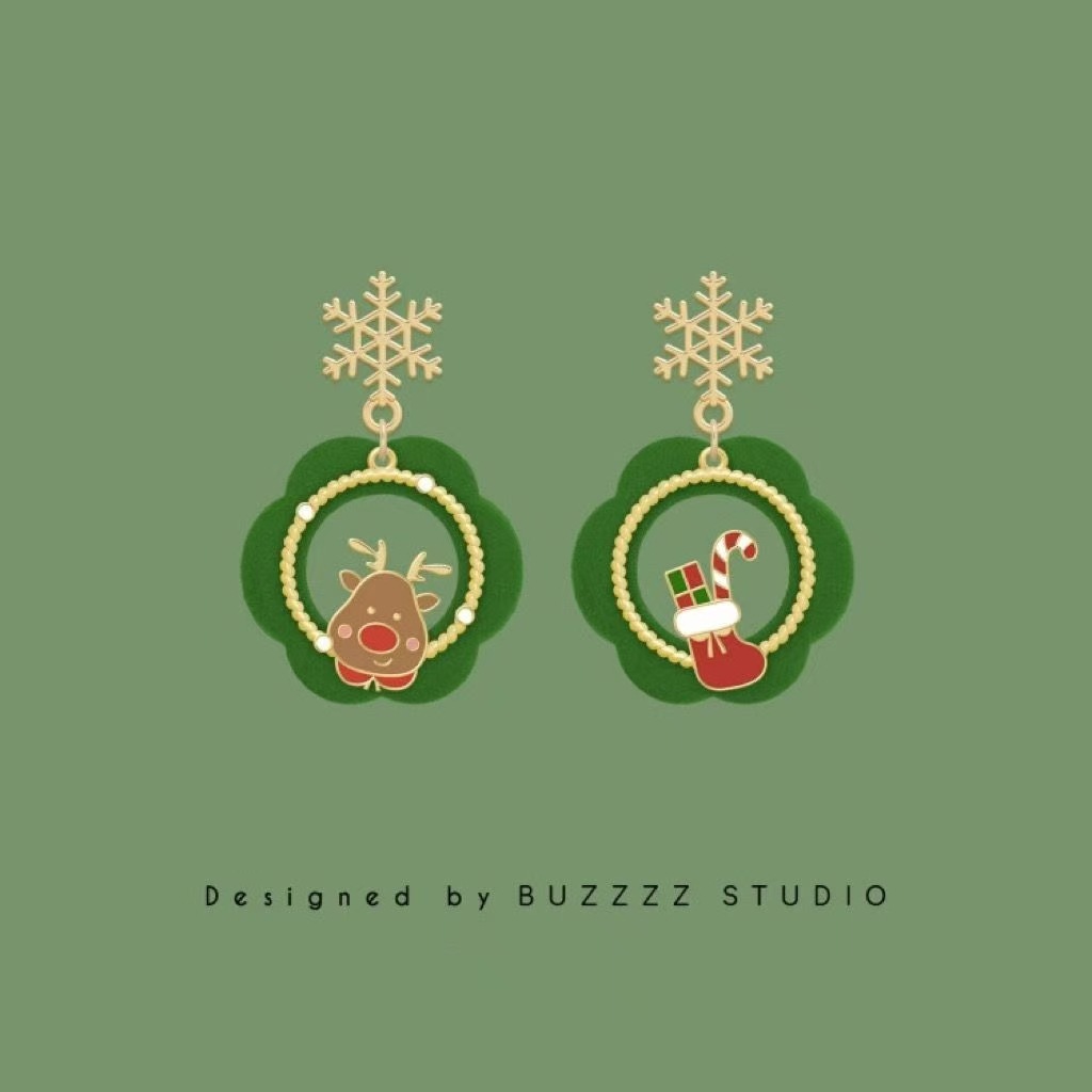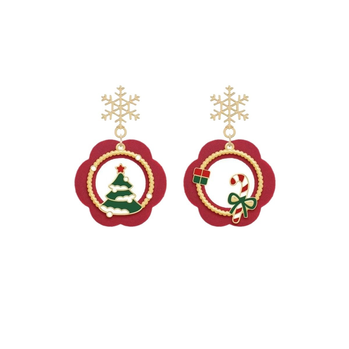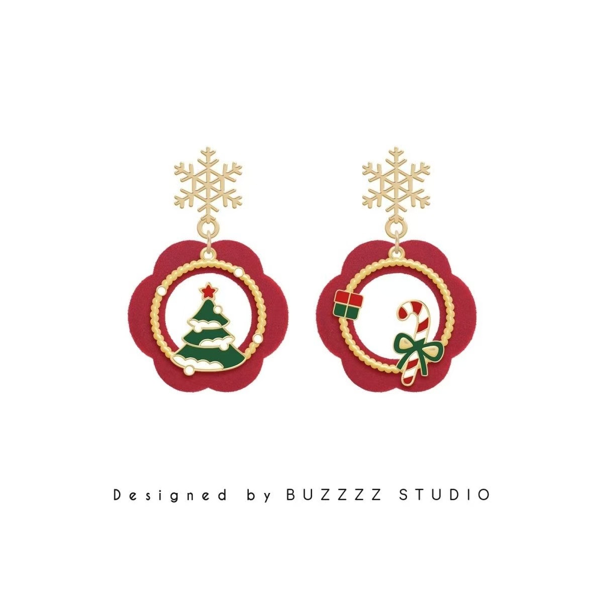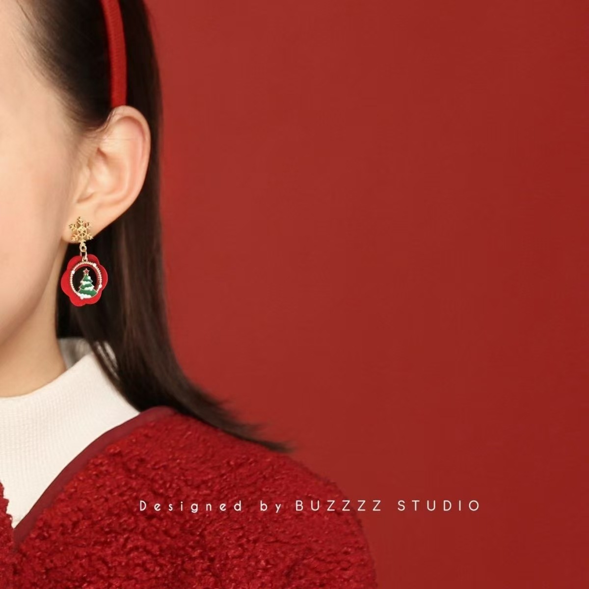 下雪圣诞树圣诞节礼物红色耳环可爱少女心节日感耳钉耳夹耳饰