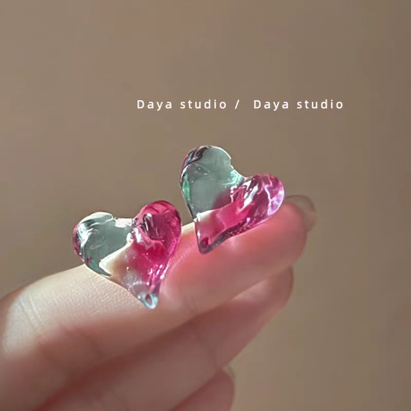 粉雾海 夏天超仙渐变果冻爱心耳环高级感小众气质少女感耳钉耳夹