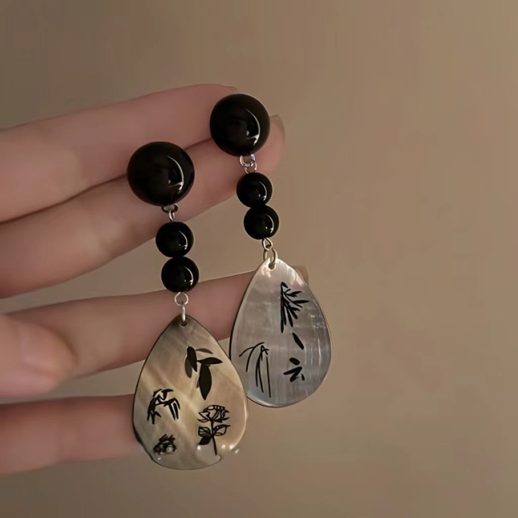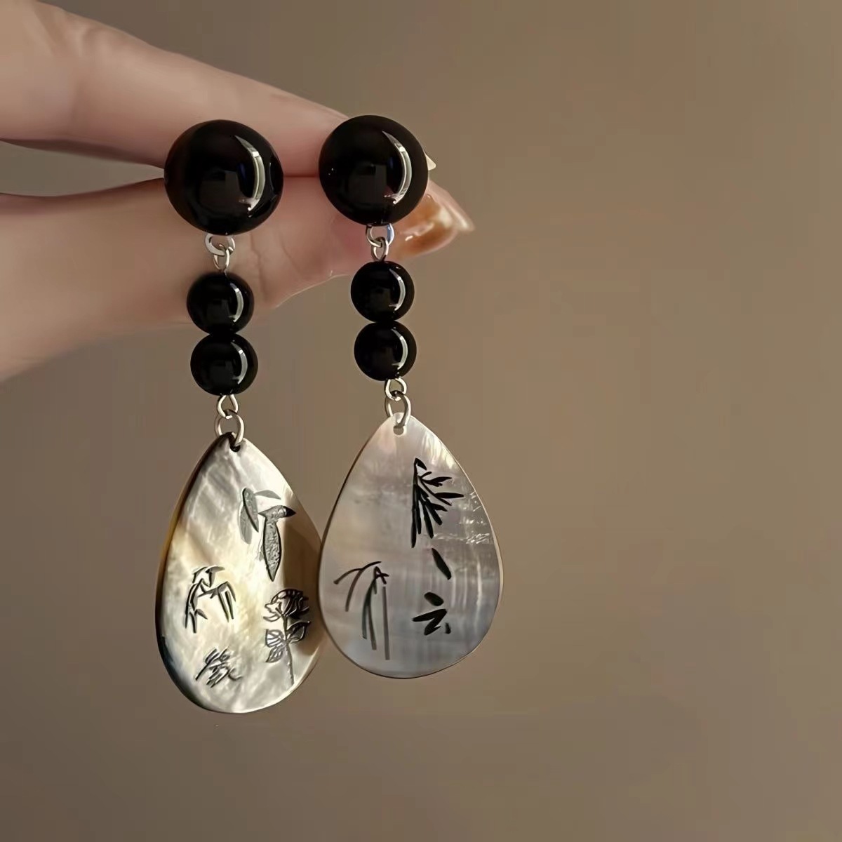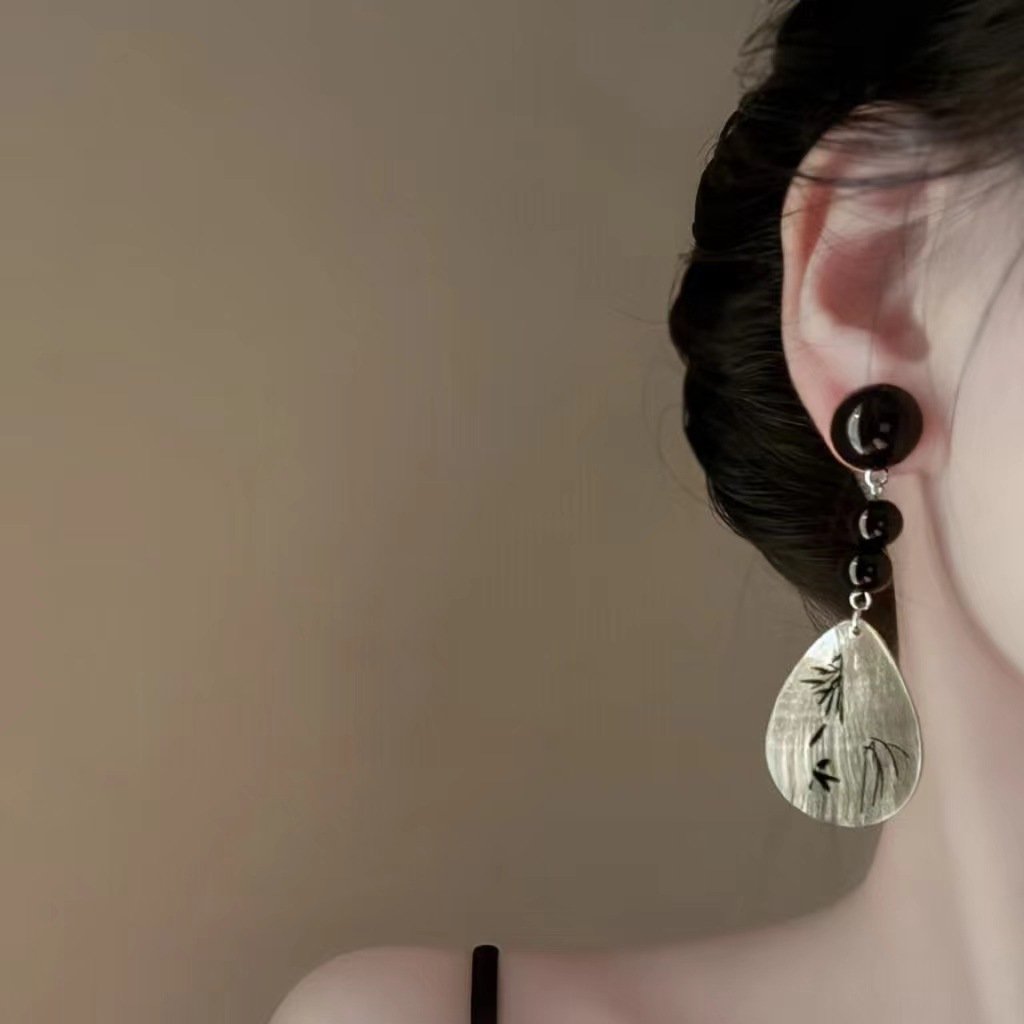 浮光影竹 新中式复古贝壳金属流苏耳环 轻奢高级感小众设计仙气质