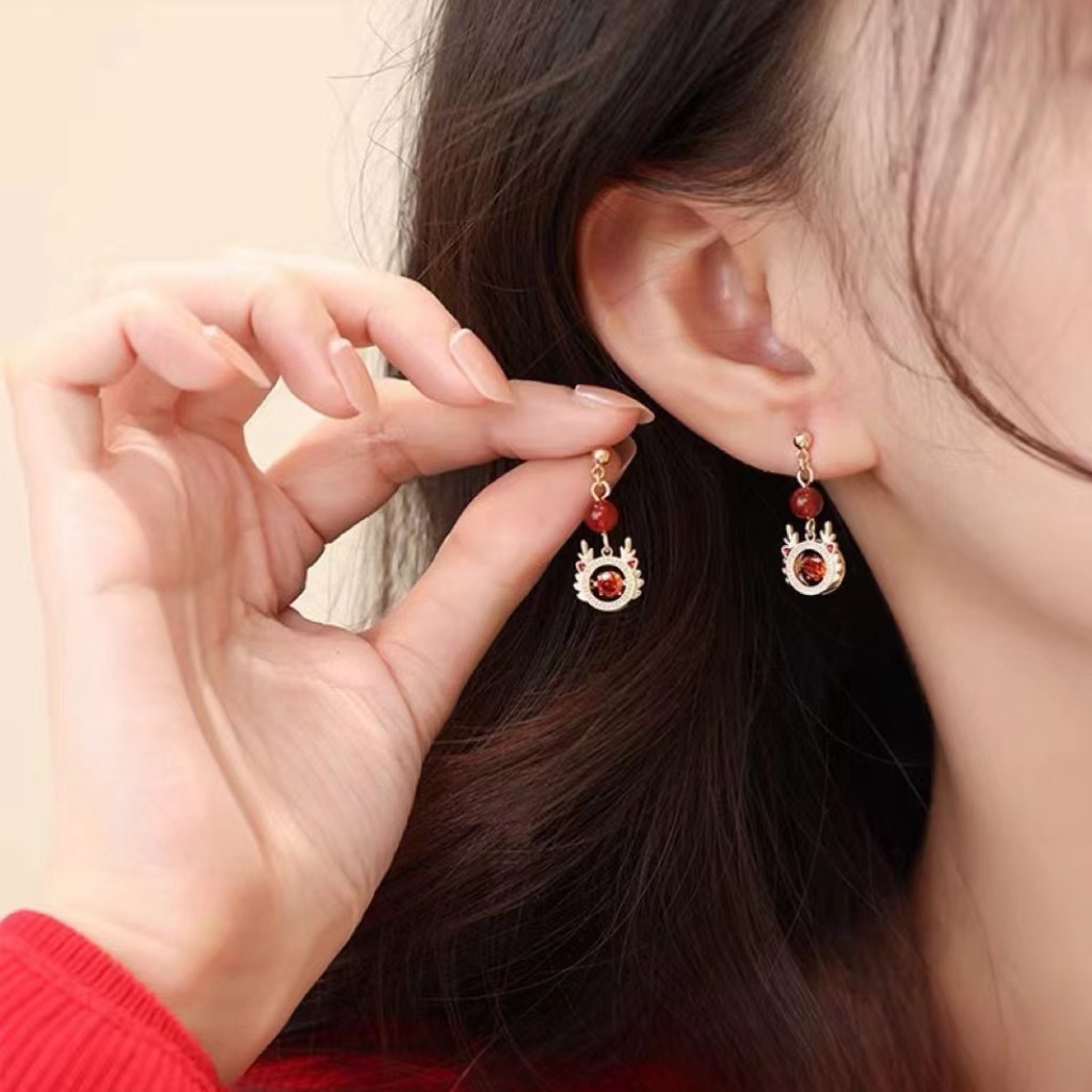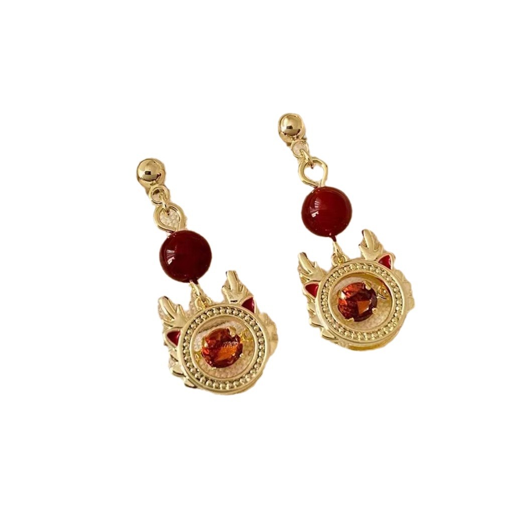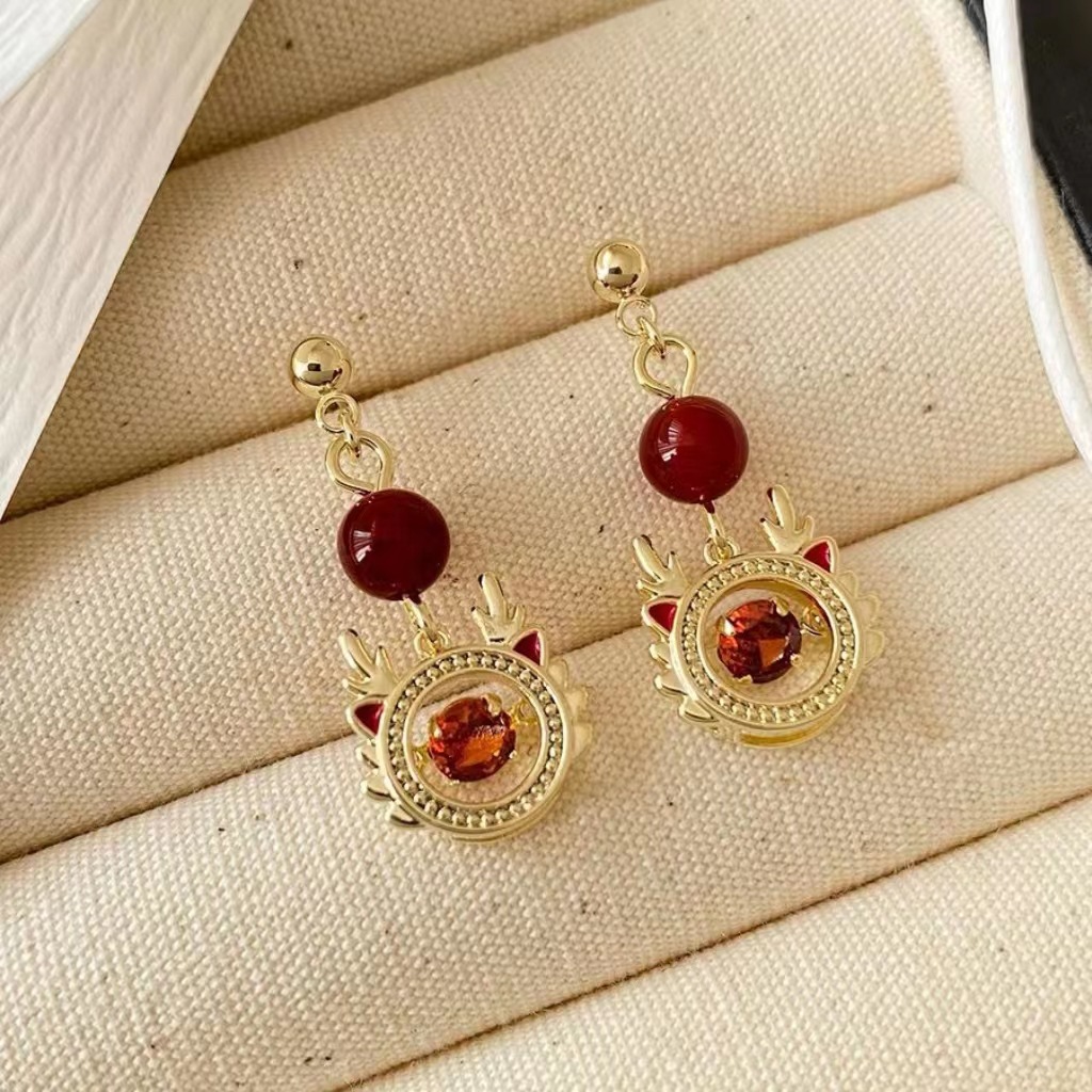 生肖龙耳钉小巧精致新中式国风耳环红玉石龙年本命年耳饰女