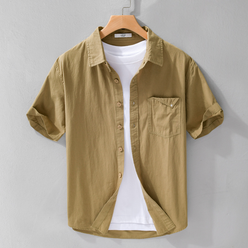 夏季男装简约短袖衬衫潮流休闲宽松百搭清新舒适干净男衬衣