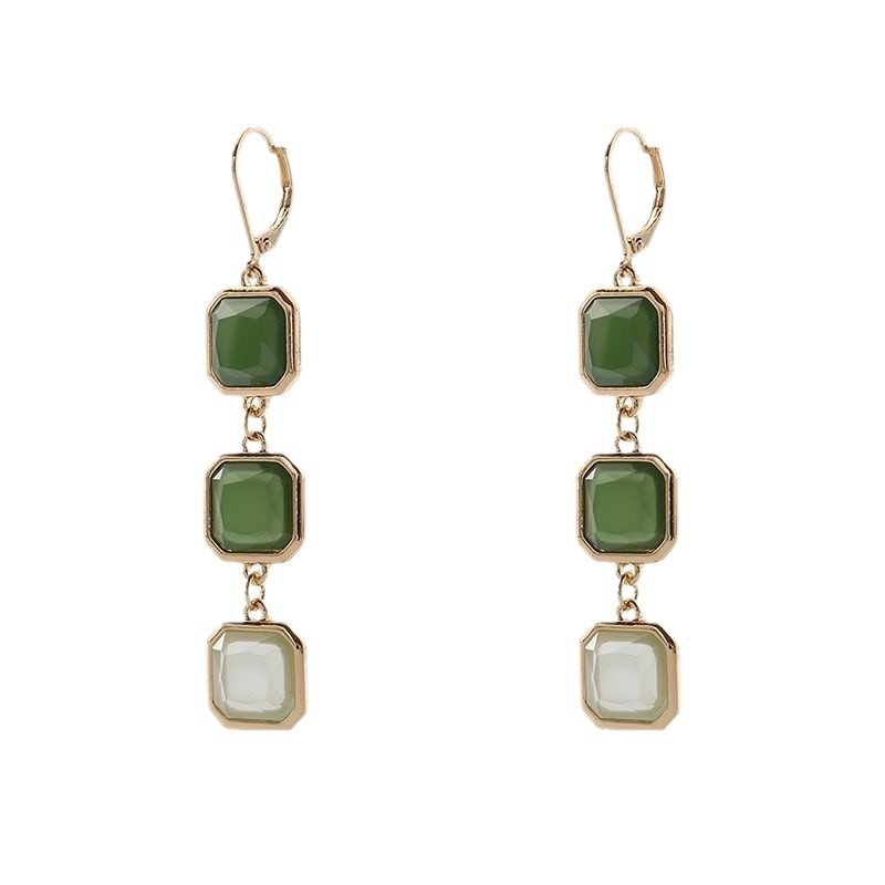 简约绿色耳环女夏季长款耳坠气质复古森系大气高级感耳饰圆脸显瘦