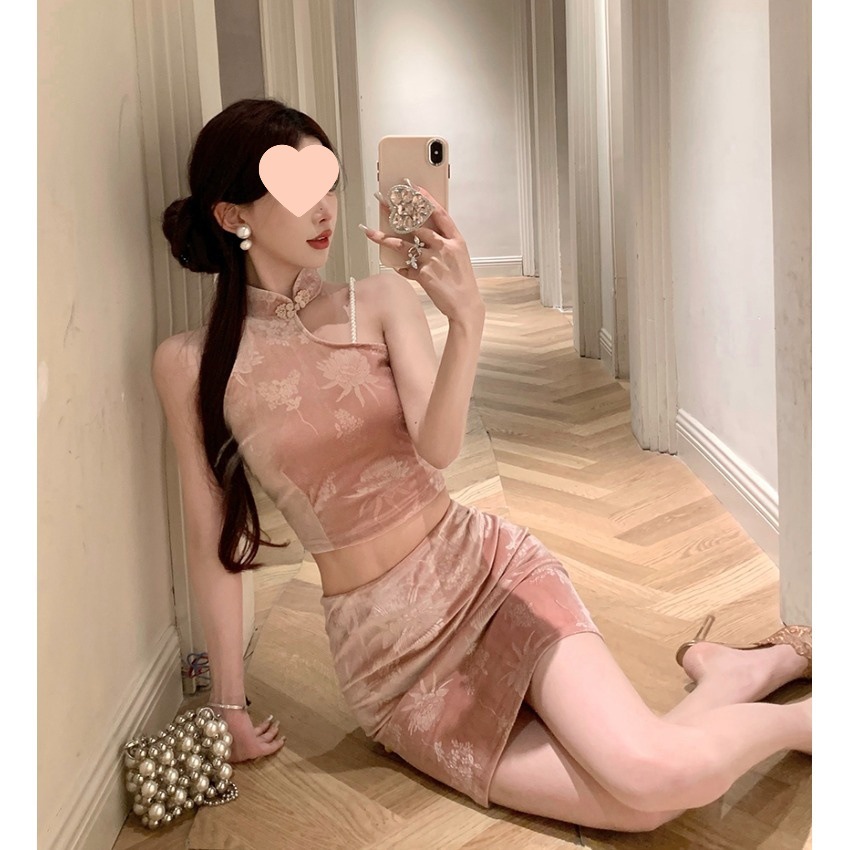 夏季新款新中式国风改良旗袍感名媛气质小个子显高两件套裙
