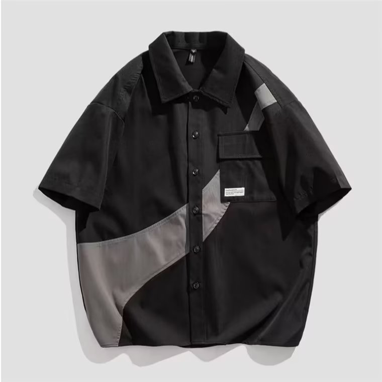 短袖衬衫夏季男士日系休闲宽松衬衣潮牌痞帅垂感工装外套半袖T恤