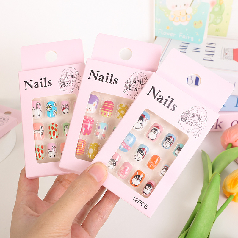 可爱甜美儿童甲片穿戴甲果冻胶指甲片贴片兔子卡通美甲甲片假指甲