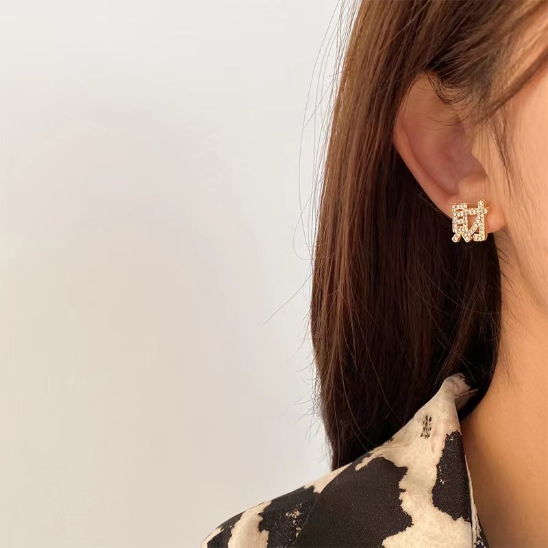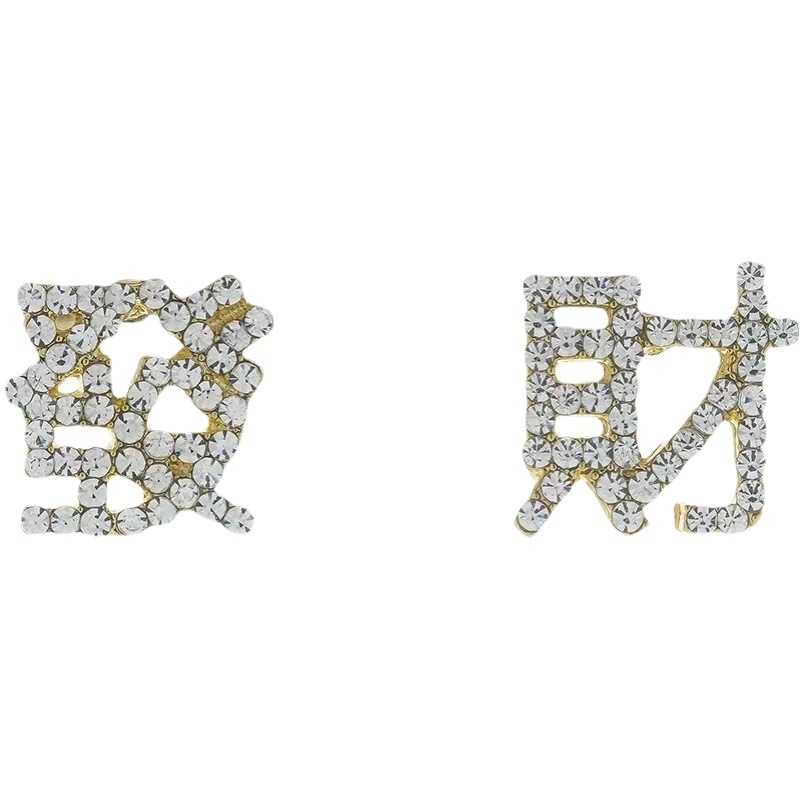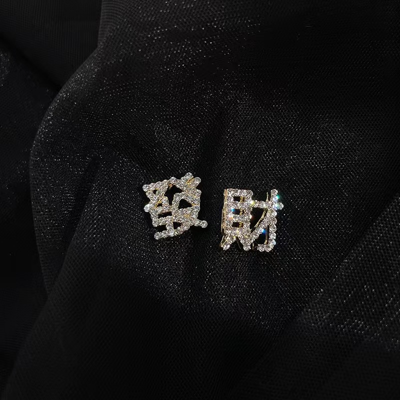 新年发财耳钉无耳洞耳夹不对称创意设计镶钻高级感简约小巧女耳环
