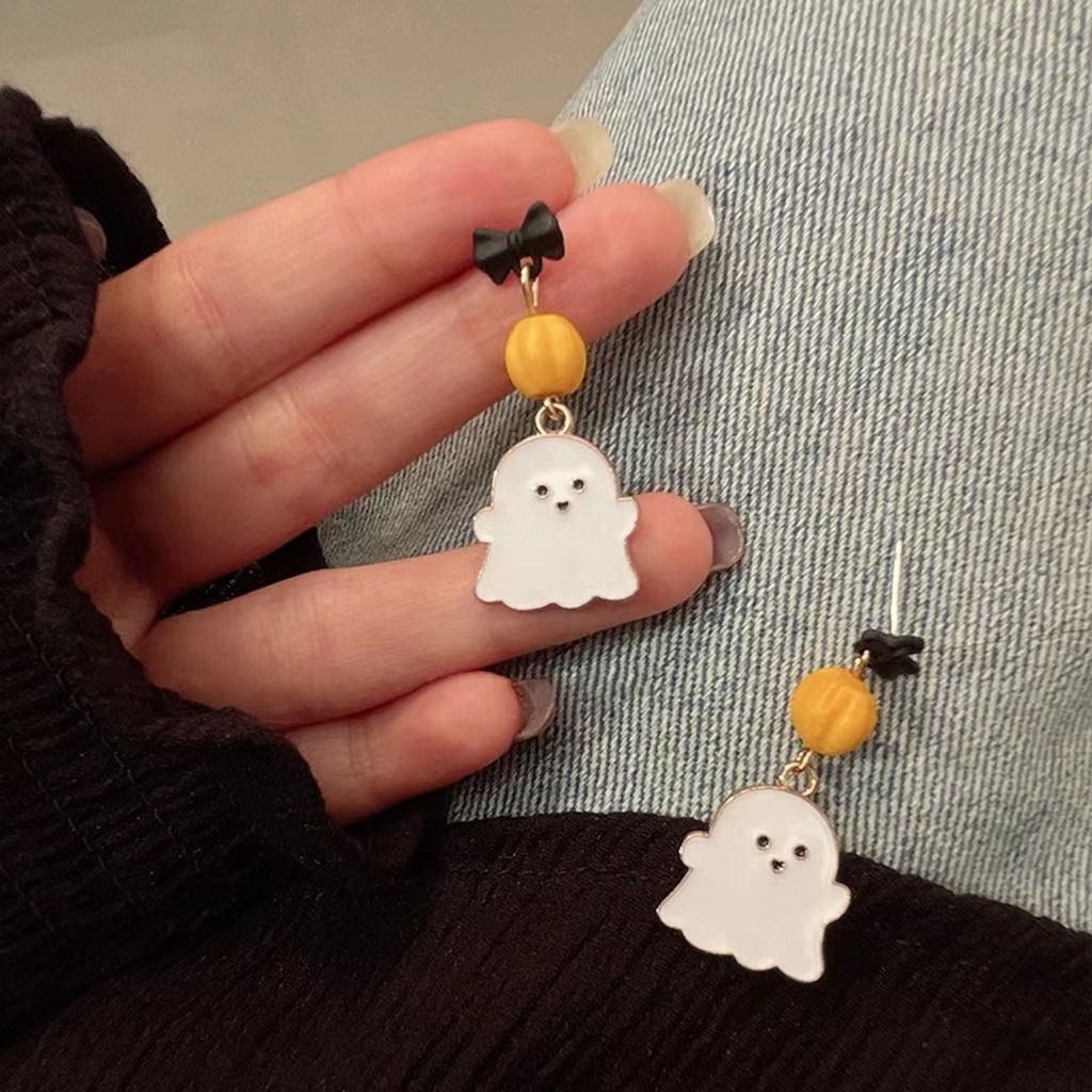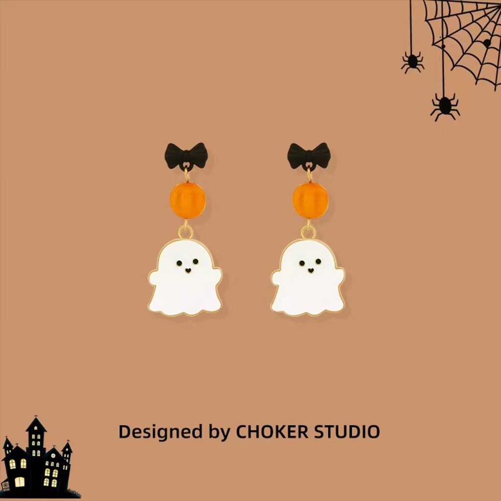 原创设计万圣节幽灵耳环可爱少女心个性独特耳钉无耳洞耳夹耳饰