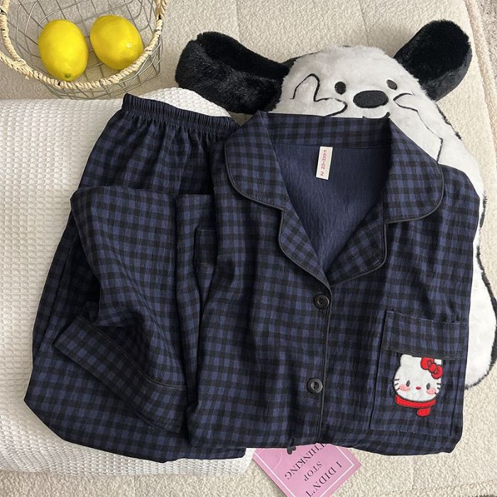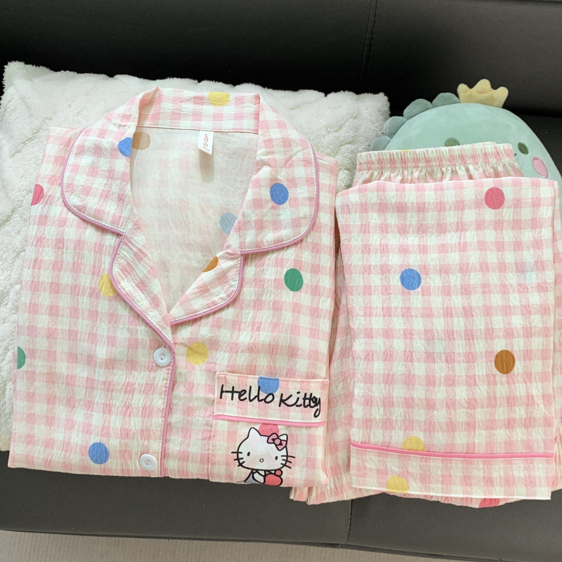- 红格波点kt猫(长袖长裤-无胸垫)