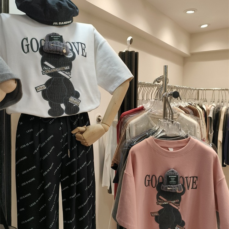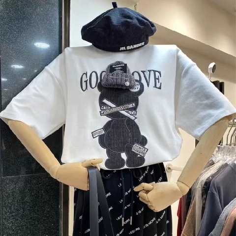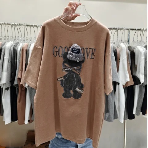 莫代尔洋气短袖t恤女夏季韩版新版宽松印花正肩显瘦休闲上衣