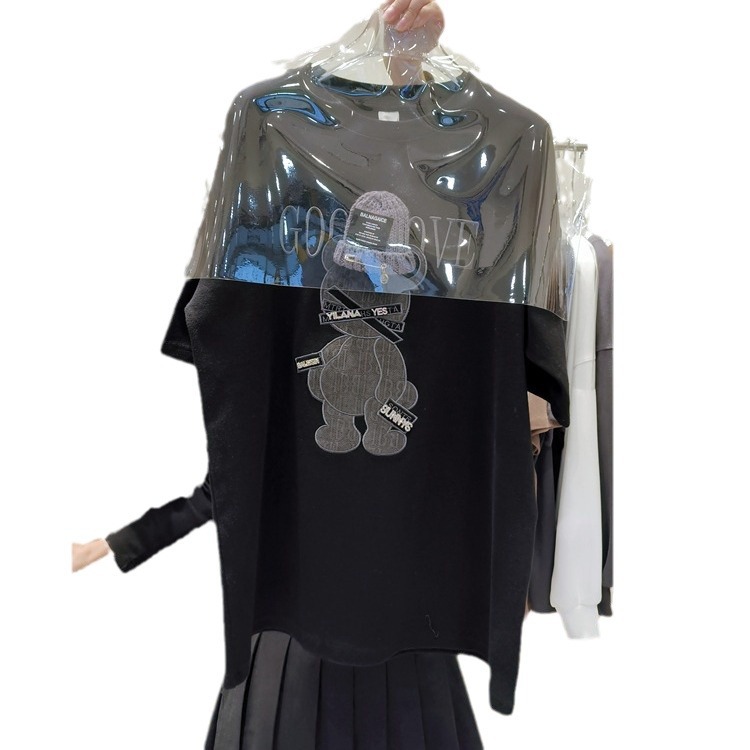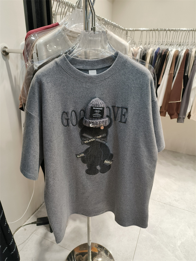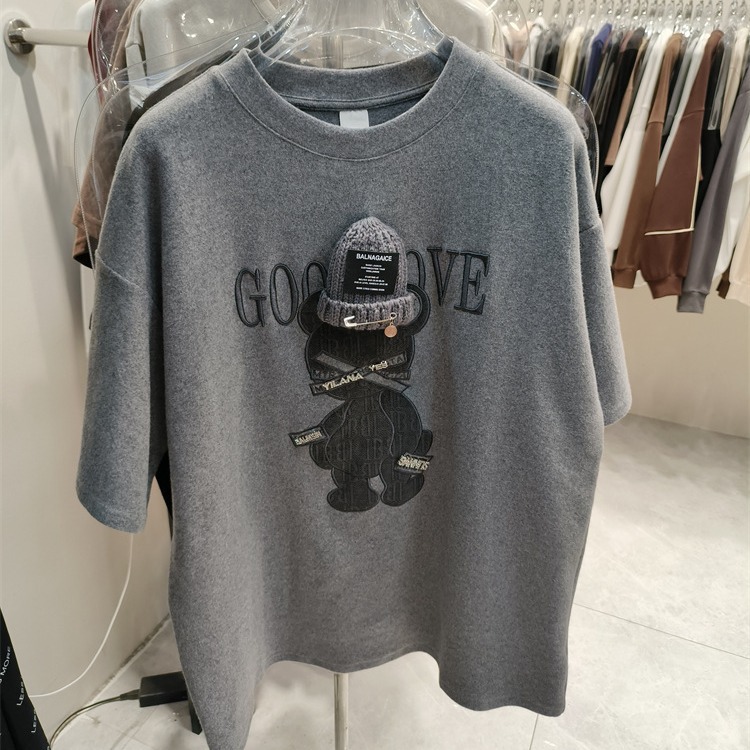 欧洲站立体帽子磨毛加厚短袖t恤女秋冬款慵懒风叠穿打底衫上衣ins