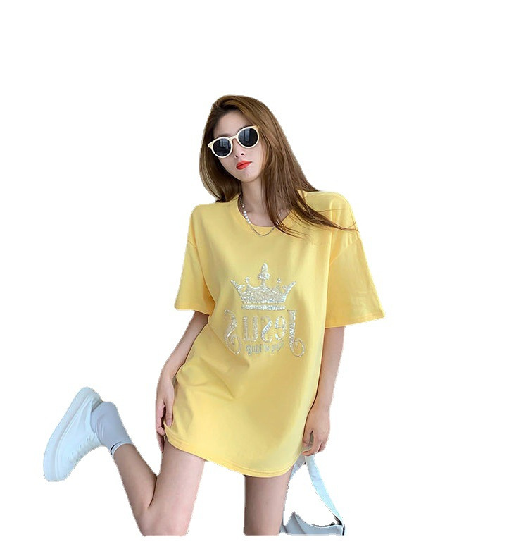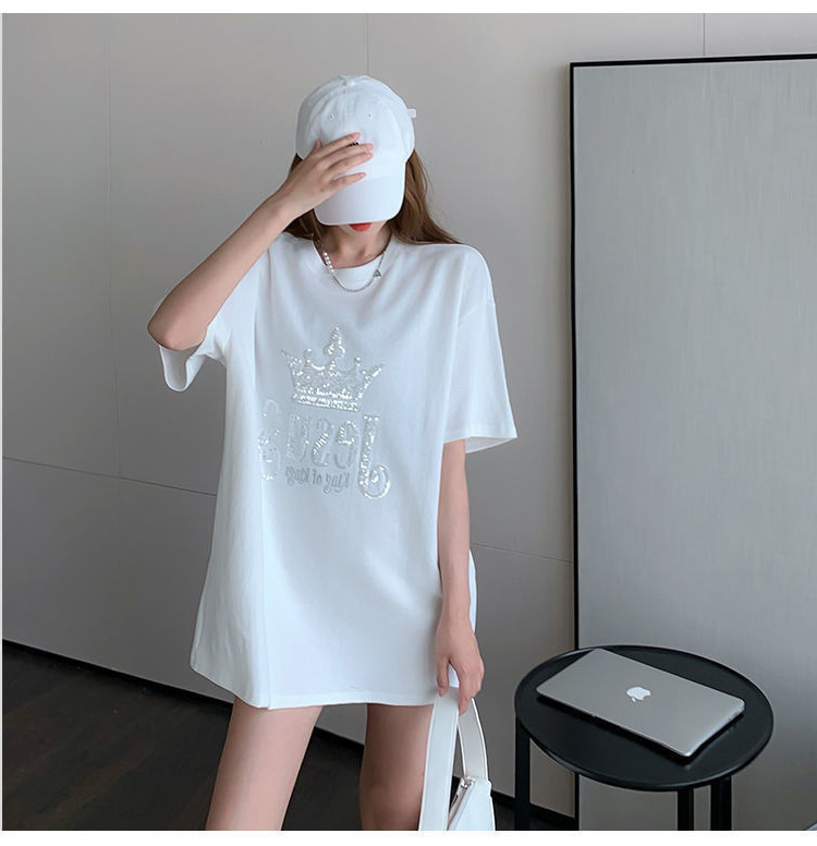 亮片刺绣短袖t恤女夏季新款百搭宽松时尚小众中长款半袖上衣