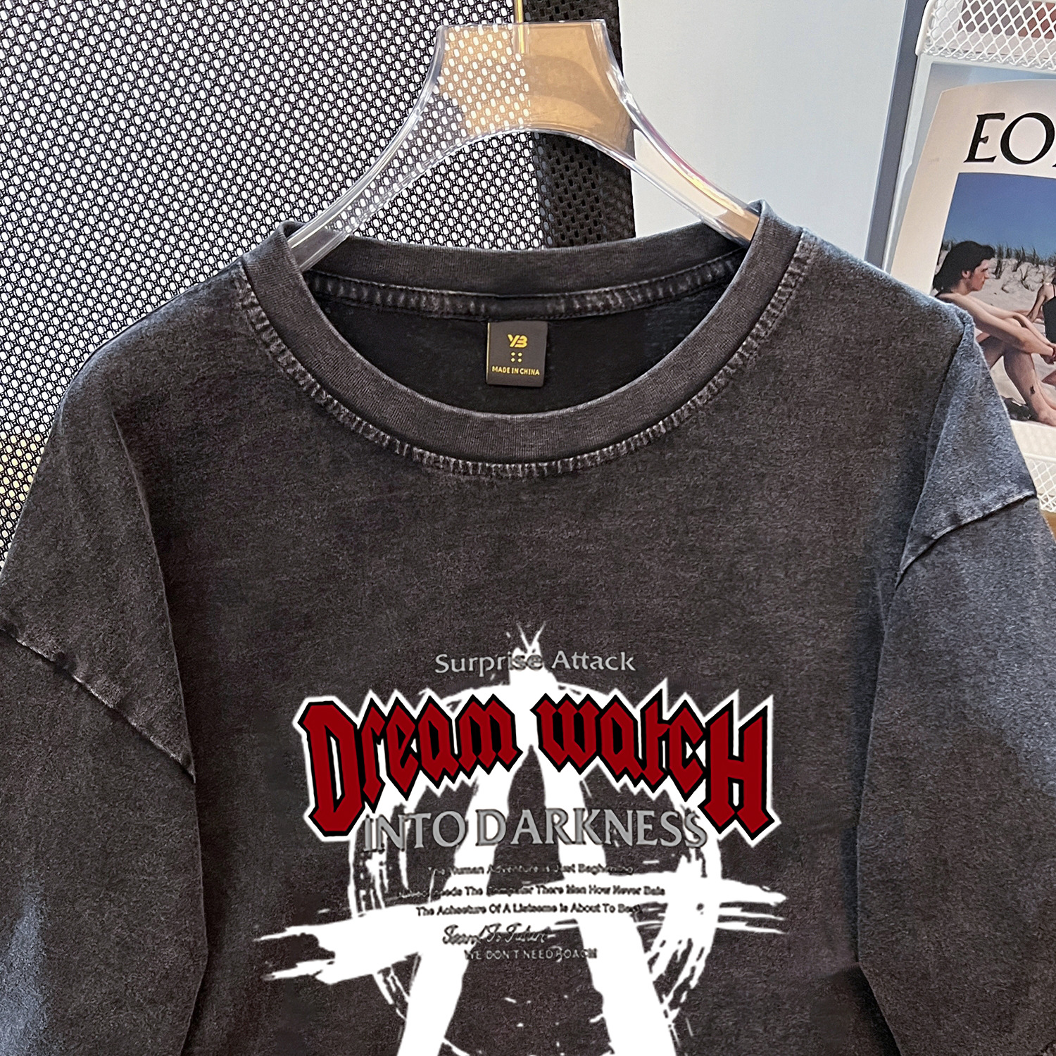 美式ins复古潮牌设计感字母印花纯棉短袖t恤男女春夏宽松情侣上衣