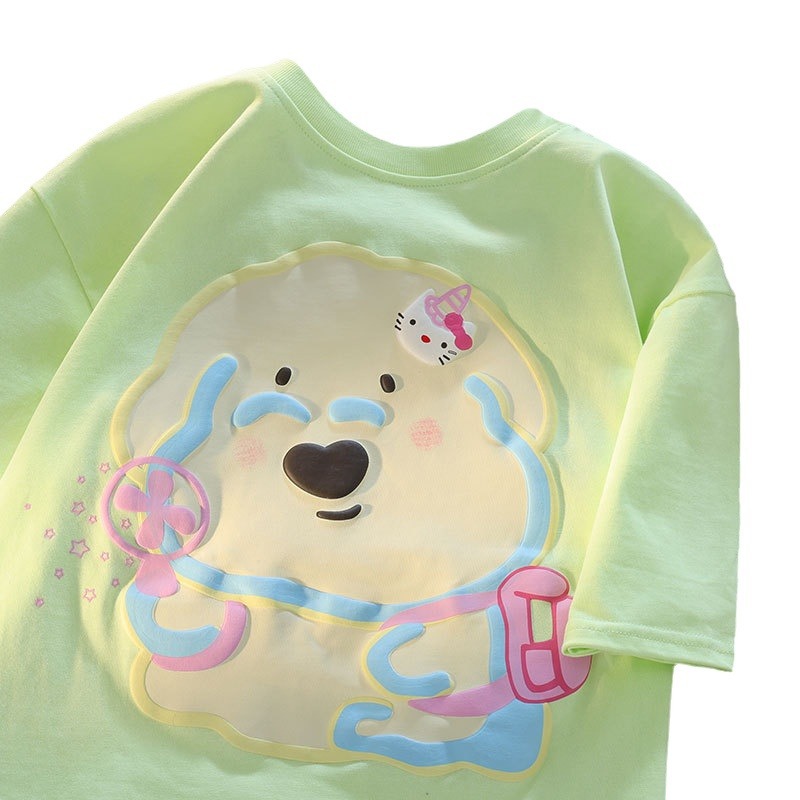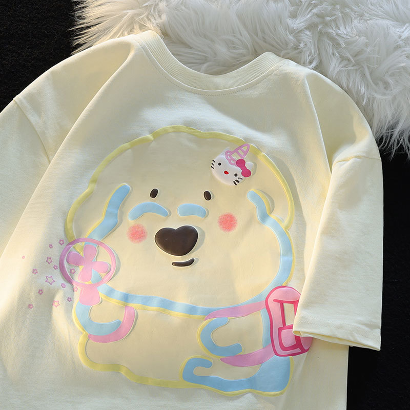 可爱甜美卡通小熊印花纯棉短袖T恤男女夏季情侣款多巴胺上衣学生