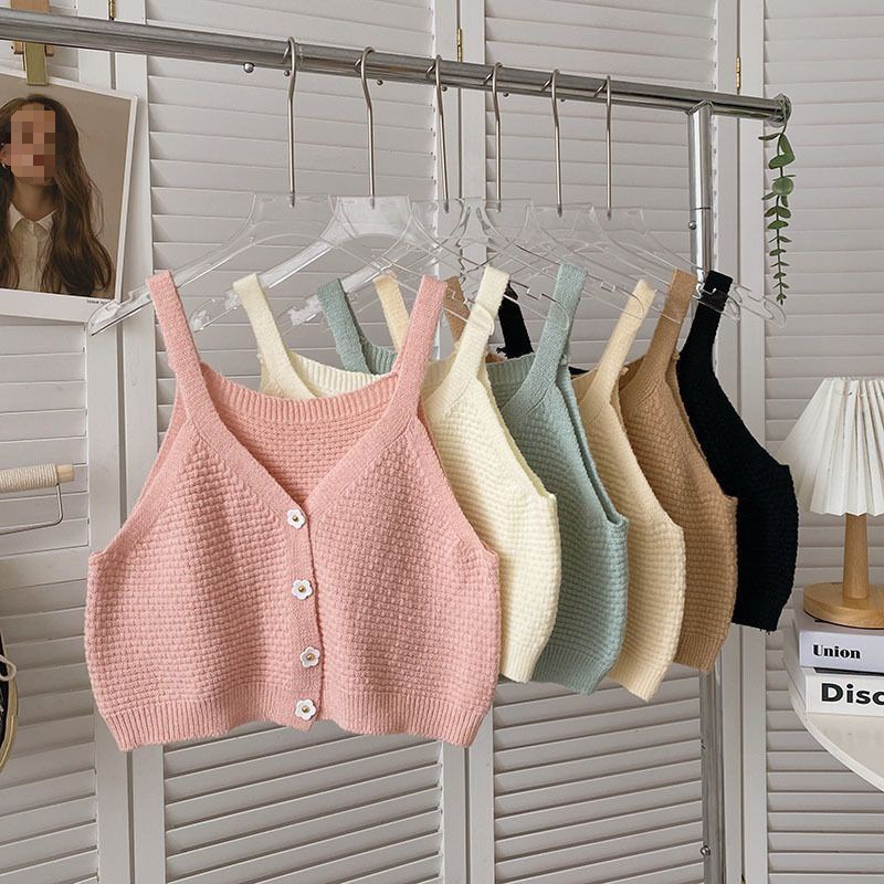 夏季女童背心吊带宝宝洋气儿童个性潮韩版花朵纽扣针织衫外穿上衣